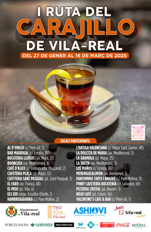 Vila-real presenta una nova proposta gastronòmica per a continuar impulsant al sector de l’hostaleria i l’oci de la ciutat. En aquesta ocasió, el protagonista és el carajillo, una elaboració tradicional que s’ha popularitzat en els últims anys i que cada dia compta amb més adeptes. El regidor de Comerç i Hostaleria, Xus Madrigal, i el president de l’Associació d’Hostaleria i Oci de Vila-real, Emilio Miralles, han presentat la I Ruta del Carajillo, que es desenvoluparà del 27 de gener al 16 de març de 2025 i en la qual participen un total de 22 bars i restaurants de la ciutat.