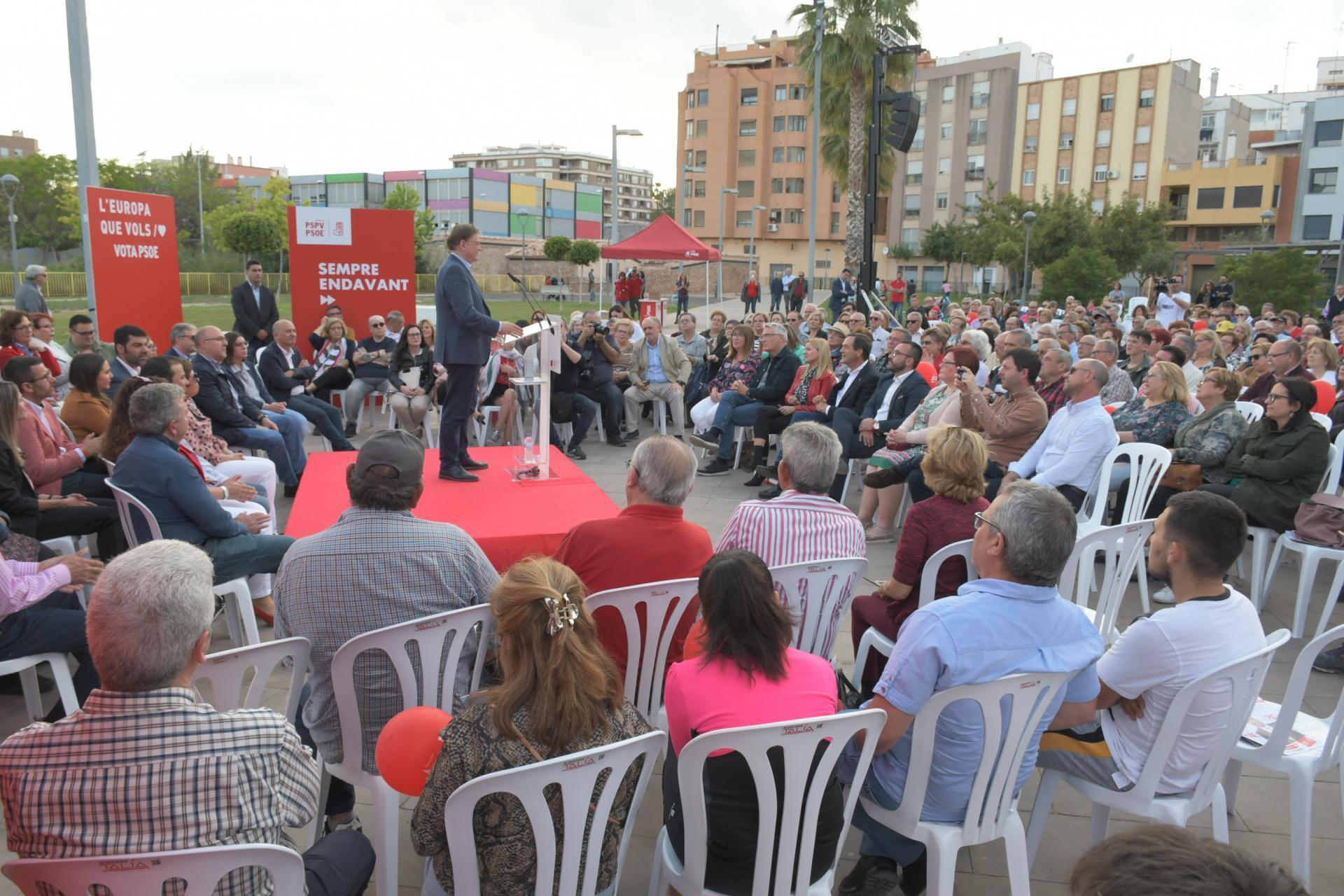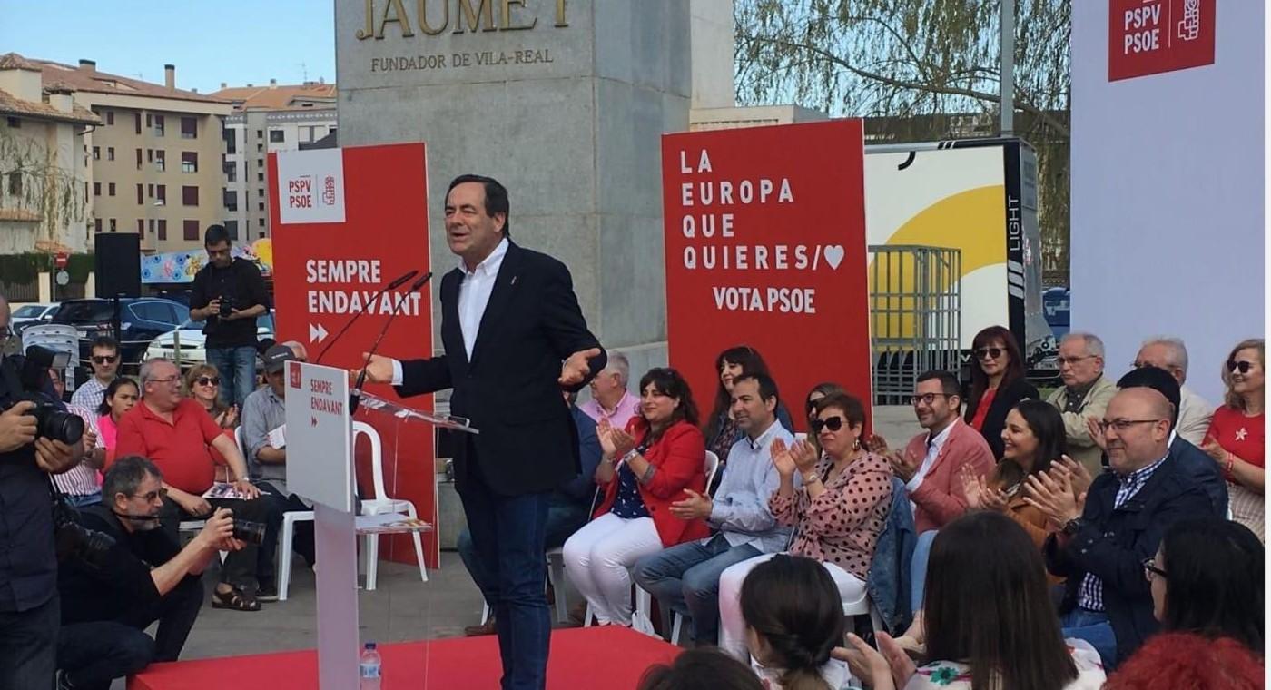 Vila-real”. “Per al PSOE el més important són les persones i per això el primera que vam fer en arribar al Govern de la Generalitat és suprimir el copagament farmacèutic, avançar la Llei de Dependència i posar en marxa tots els mecanismes possibles per a reduir l’atur”. I finalment, el nostre futur, només pot anar de la mà d’Europa, bressol de la democràcia, el benestar i els drets socials i a pesar que hi ha intents de destruir-la, necessitem continuar donant suport a aquest projecte comú”.