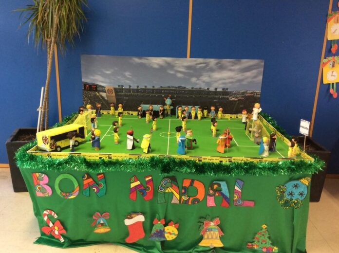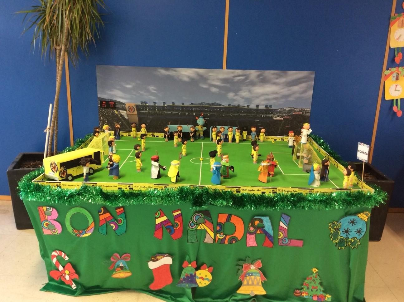 Amb l’ajuda de les famílies, i com a centre obert a la comunitat educativa que som, Blanca, la nostra mestra de religió, va tenir l’idea de que l’equip del Villarreal CF i el món al voltant del futbol representarà les escenes d’un betlem tradicional junt als personatges principals (nen Jesús, Mare de Déu, Sant Josep, els Reis Mags...).