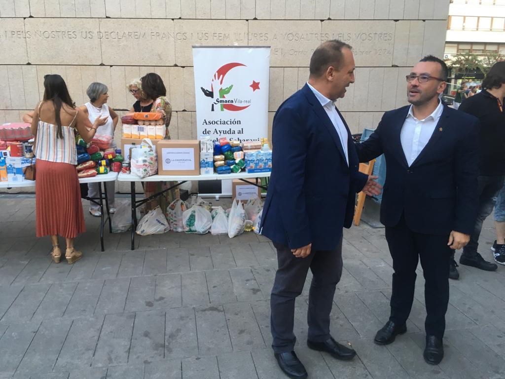Després de la reunió celebrada a l'Ajuntament de Vila-real i a la qual també ha assistit el regidor d'Agricultura, Sostenibilitat, Transició Ecològica, Energètica i Medi Ambient, José Ramón Ventura Chalmeta, l'alcalde i el conseller d'Habitatge han participat en la campanya de recollida d'aliments solidaris a benefici de l'ONG Smara d'ajuda al poble sahrauí que s'ha celebrat en la plaça Major emmarcada en les festes patronals de la Mare de Déu de Gràcia.