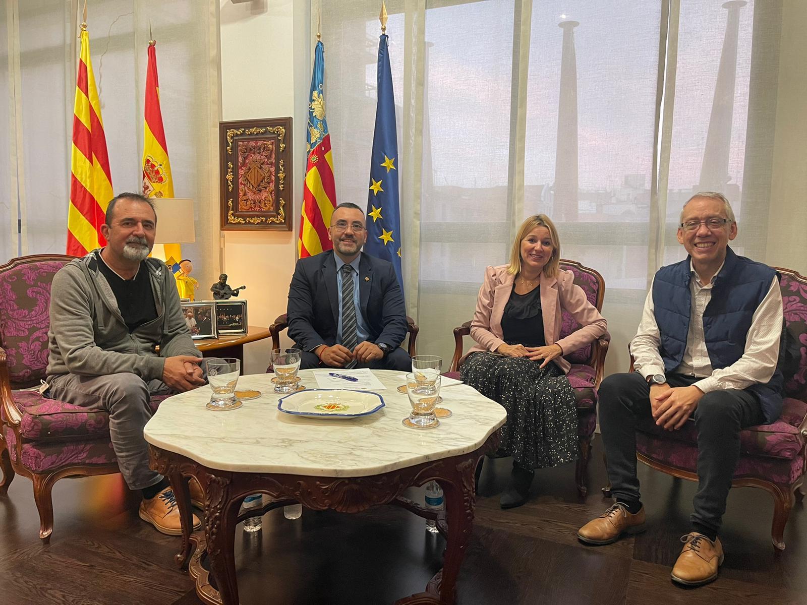 L'alcalde de Vila-real, José Benlloch, i la regidora de Serveis Socials, Silvia Gómez, han rebut Jesús Moril, director de la Fundació ONCE a la província de Castelló, i José Francisco Jiménez, gestor comercial l'Once.