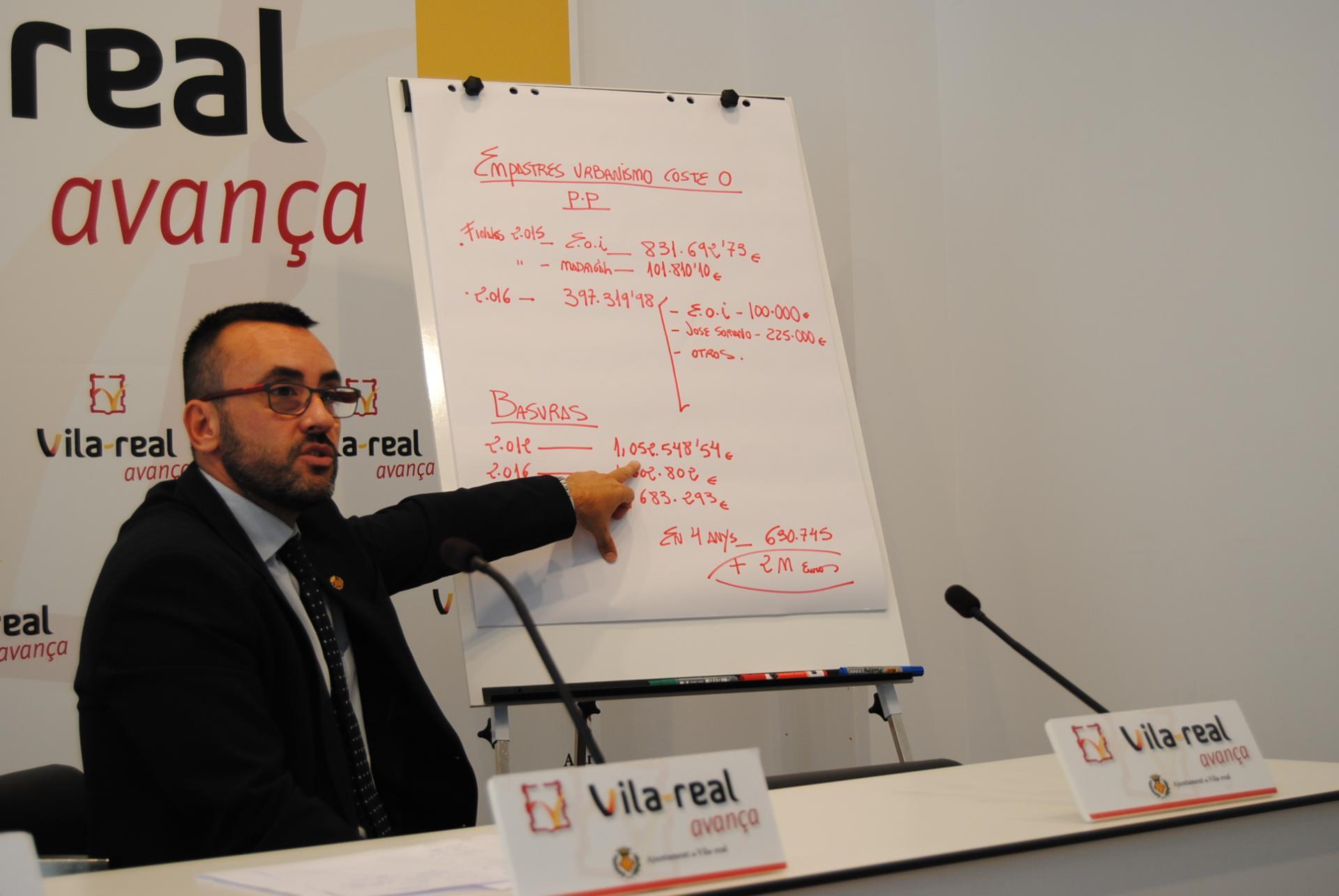 En concret, en 2016 els comptes municipals han hagut de fer front al pagament de 397.320 euros més interessos corresponents a sentències com la del José Soriano i l’EOI, el principal de la qual, 831.692 euros, va haver d'abonar-se a finals de 2015 juntament amb altres 101.810 euros de sentències del Madrigal. A aquestes quantitats, se suma l'increment del cost de tractar els residus en Reciplasa, que suposa 630.745 euros més, passant de 1.052.548 euros en 2012 als 1.602.802 de 2016 o els 1.683.293 euros que costarà en 2017, amb un altre encariment del 7%. “Altres municipis de Reciplasa han repercutit aquest increment en les taxes del fem, però a Vila-real no tenim aquesta taxa. Per això, davant l'encariment dels costos, teníem dues opcions: crear una nova taxa o ajustar lleugerament l'IBI després d'haver-ho mantingut congelat i baixar-lo un 10% en 2014”, detalla Benlloch.