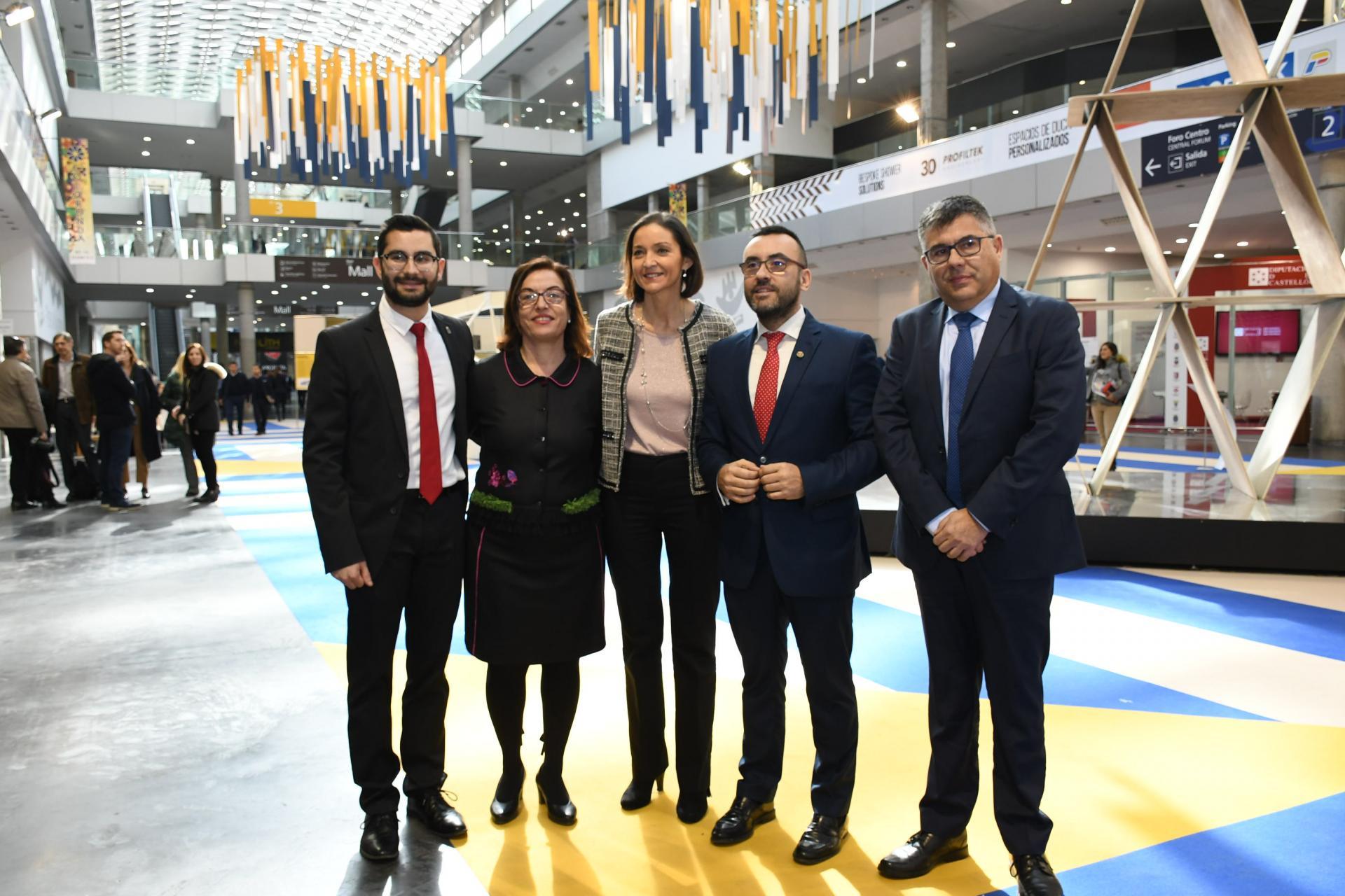 president de la Generalitat, Ximo Puig, i la ministra d’Indústria, Reyes Maroto, en la inauguració del certamen. D’aquesta manera, l’alcalde ha volgut mostrar el suport de l’Ajuntament a la indústria ceràmica de Vila-real, principal motor de l’economia local. Benlloch ha visitat els expositors de diverses empreses ceràmiques, per a conéixer les últimes novetats del sector. “La ceràmica és una indústria potent i tremendament innovadora, base fonamental del projecte de Ciutat de la Ciència i la Innovació que abanderem i eix de desenvolupament i creació de riquesa i ocupació al ciutat, que se situa de nou com el muncipi de més de 40.000 habitants amb menys atur de la Comunitat. Sense la ceràmica, aquest lideratge no seria possible”, assegura Benlloch.