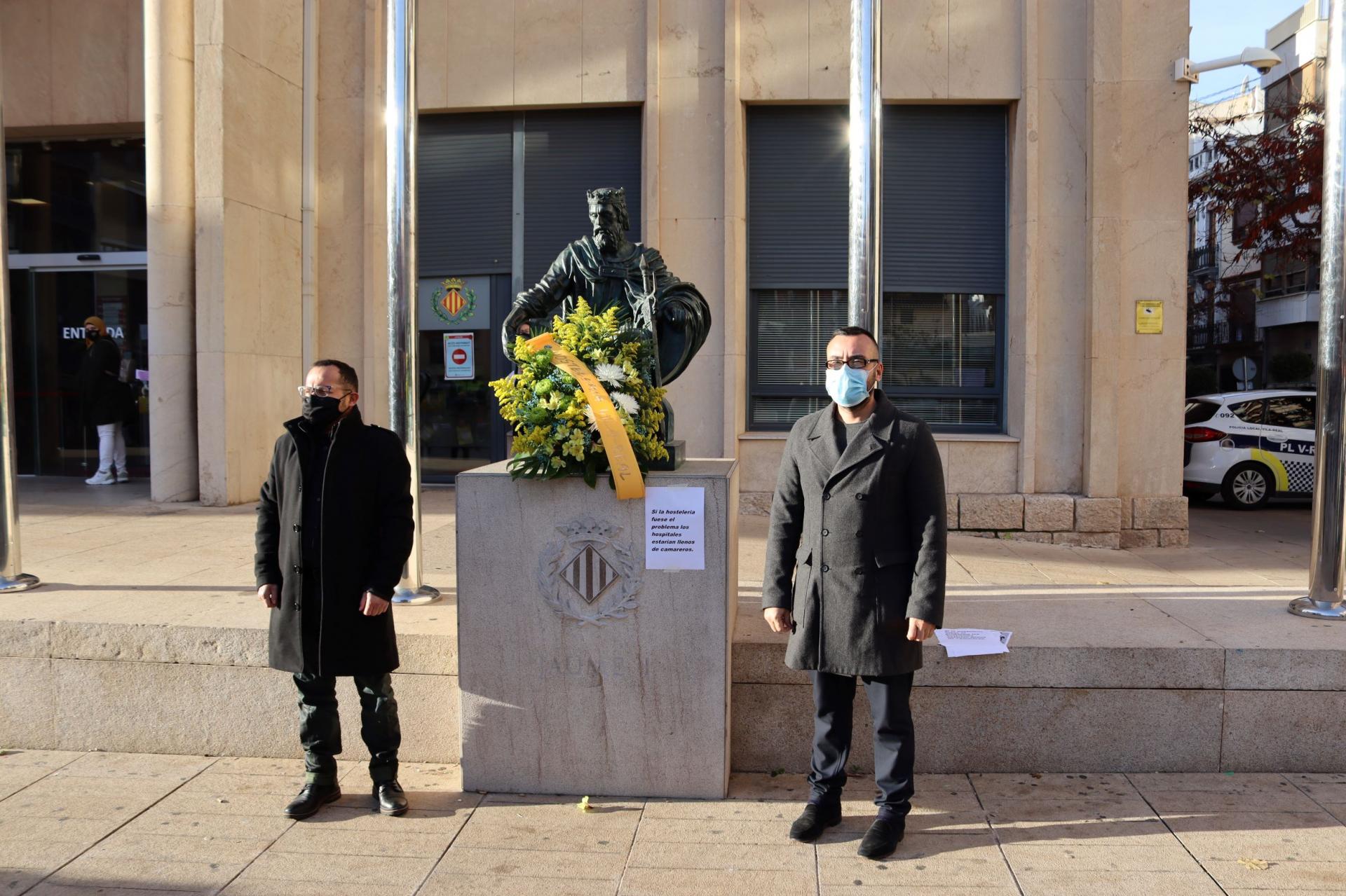 Abans de la reunió celebrada a la Casa dels Mundina, tant l’alcalde com els regidors de la corporació han participat en la concentració que els empresaris d’hostaleria i oci de la ciutat han convocat enfront de l’Ajuntament en suport al sector. Després de la lectura d’un manifest, s’ha realitzat una ofrena floral davant l’escultura del fundador, Jaume I.