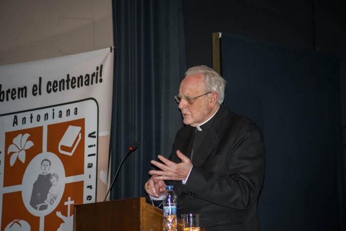 “Els cent anys són simplement un senyal que el temps passa però l'amor roman”. Amb aquestes paraules, el cardenal Carlos Amigo Vallejo afirmava l'actualitat de la vida franciscana. ‘La Joventut Antoniana, amb la vostra presència, esteu donant resposta a la vigència de l'esperit franciscà’, afegia. Però de la conferència que Amigo va compartir amb motiu del centenari de la fundació de Joventut Antoniana a Vila-real van emanar altres idees com que la nostàlgia del passat solament produeix tristesa i que la por al futur destrueix l'esperança. Per açò, Amic va animar als membres de l'associació i a tots els assistents a mirar el passat amb gratitud, el present amb esperança i a no cessar en el treball per a definir l'avenir que volem.