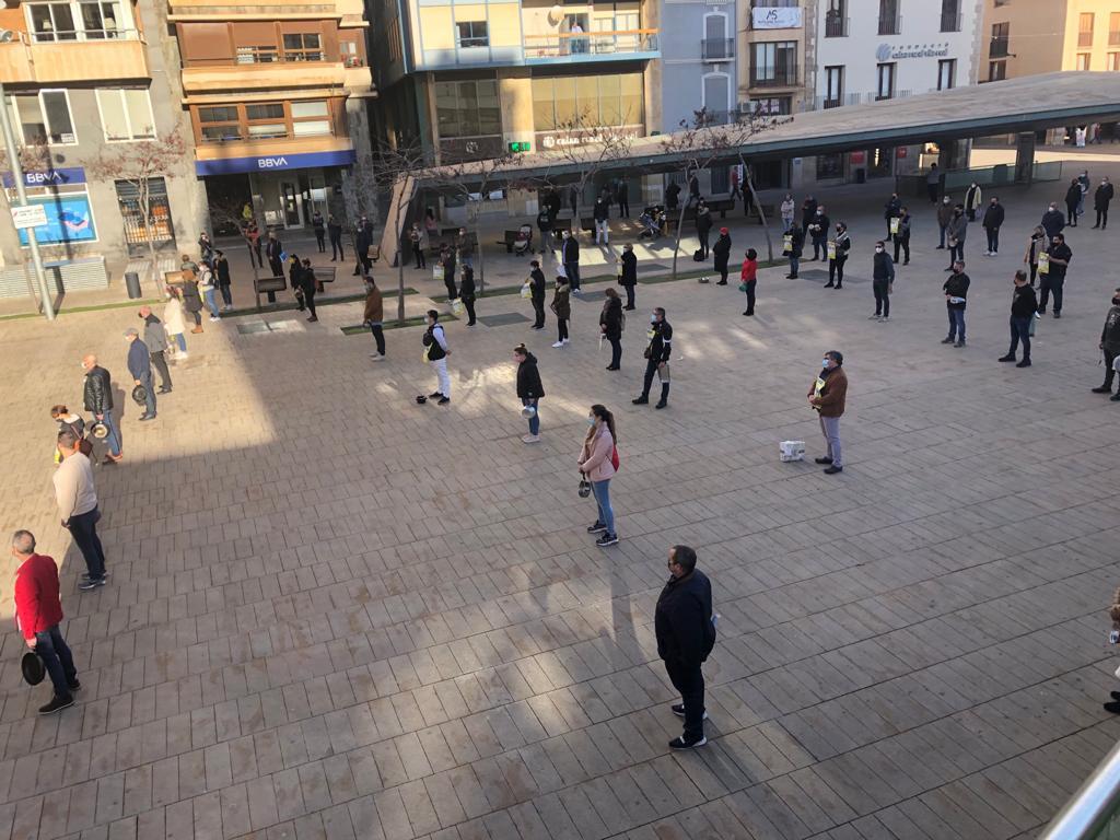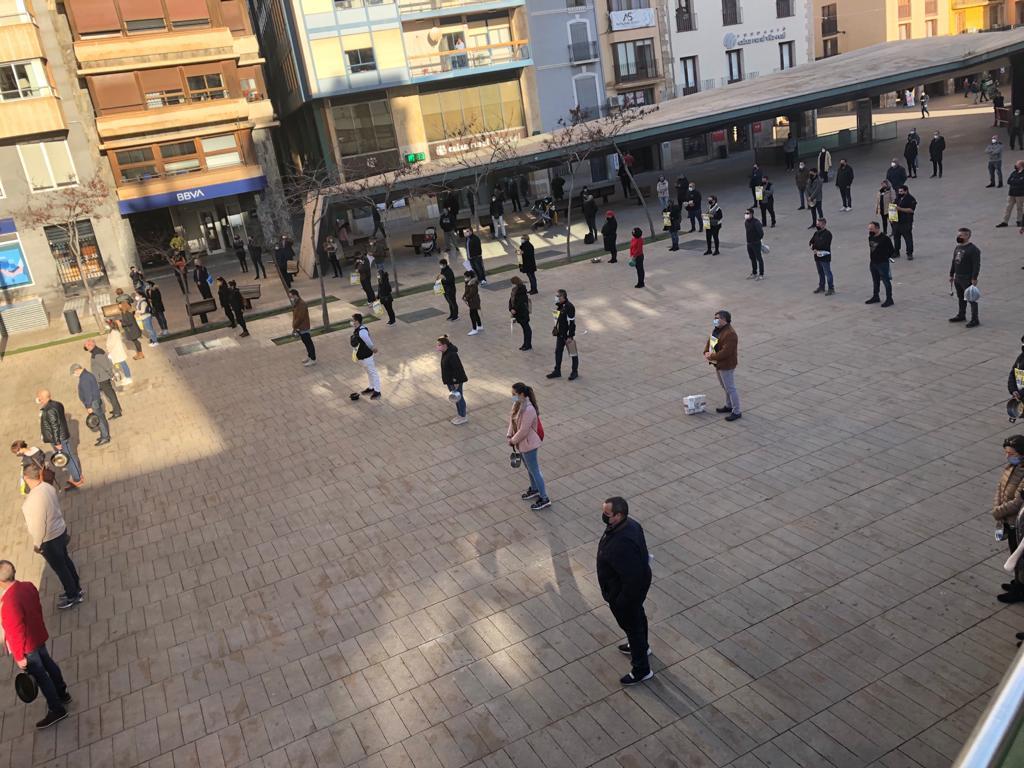 L’acció de protesta pacífica ha durat cinc minuts i després han guardat un minut de silenci per la víctimes de la Covid-19. Els treballadors del sector han lamentat la poca planificació i les decissions desencertades dels responsables polítics i han tirat el gènere malgastat després de set dies tancats com a mostra de la dura situació que travessen