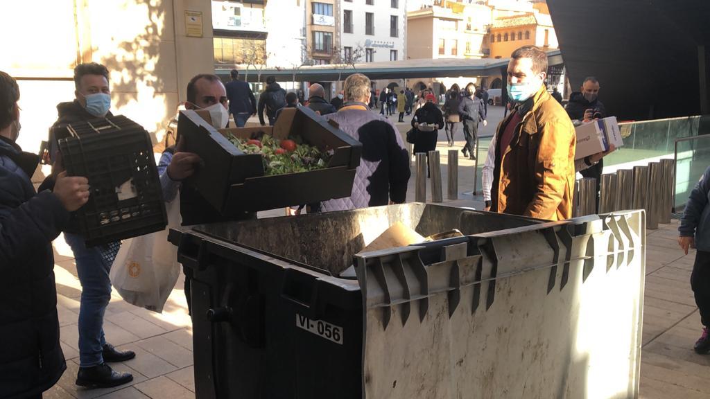Els treballadors del sector han tirat el gènere malgastat després de set dies tancats com a mostra de la dura situació que travessen