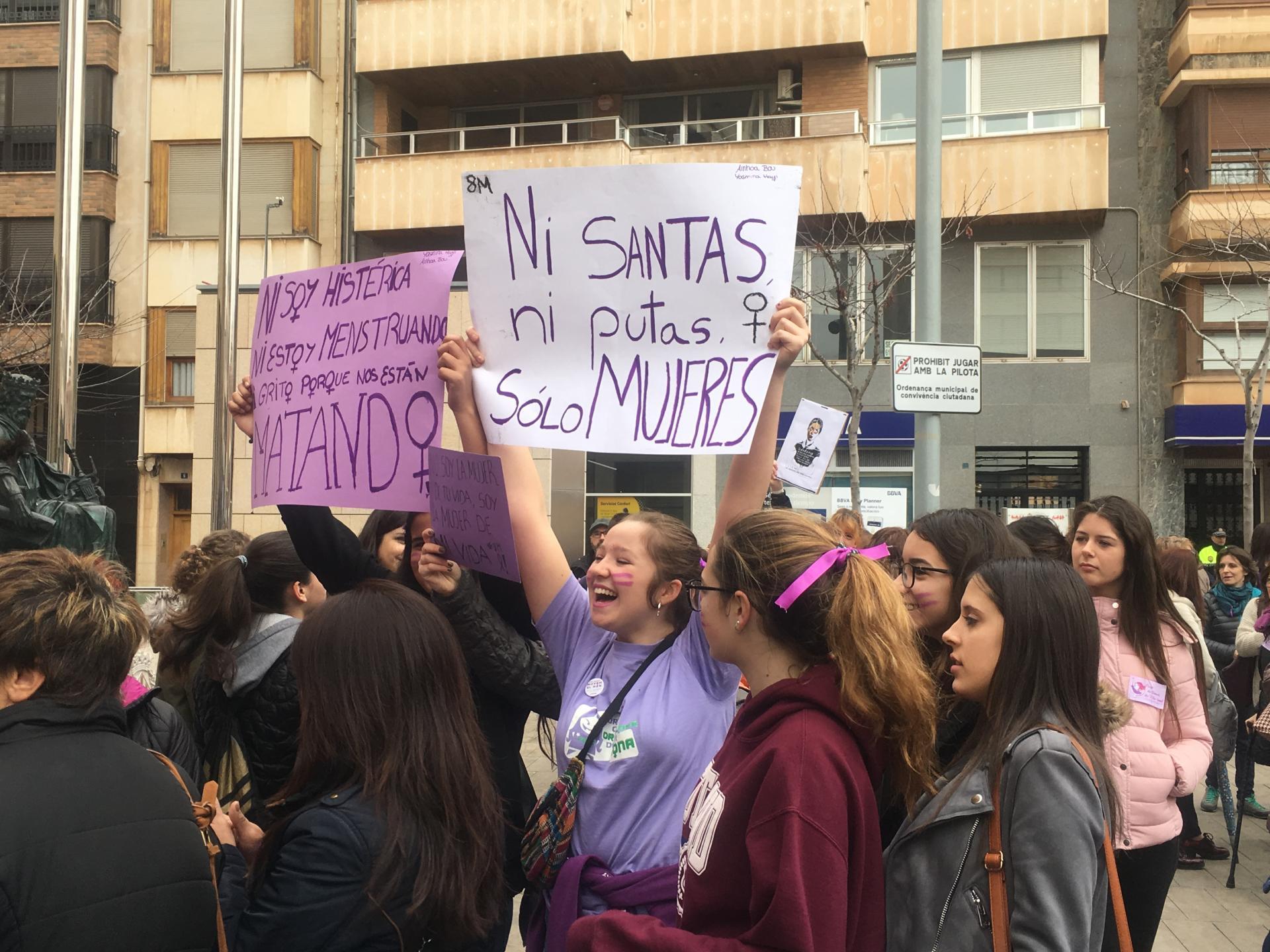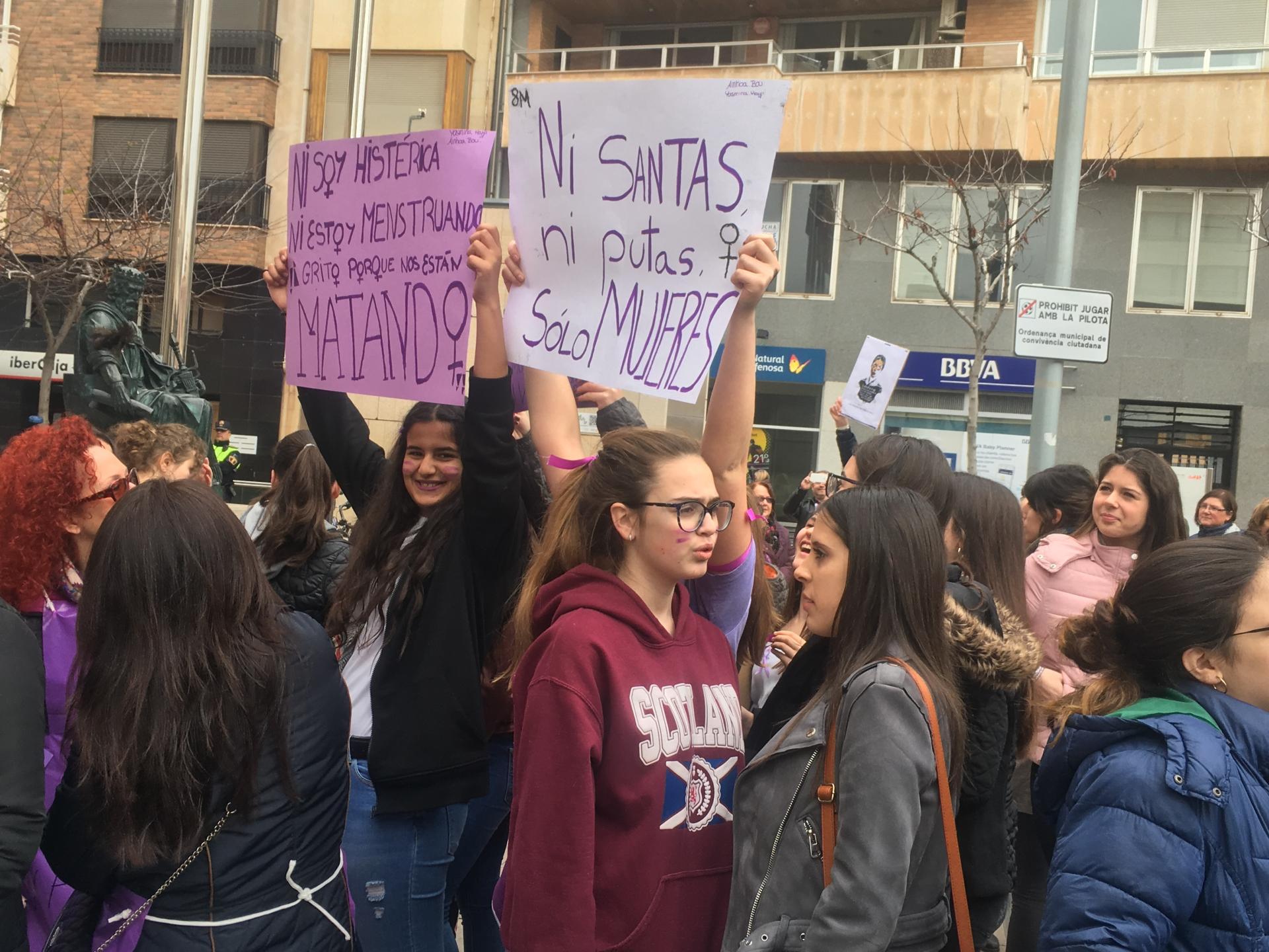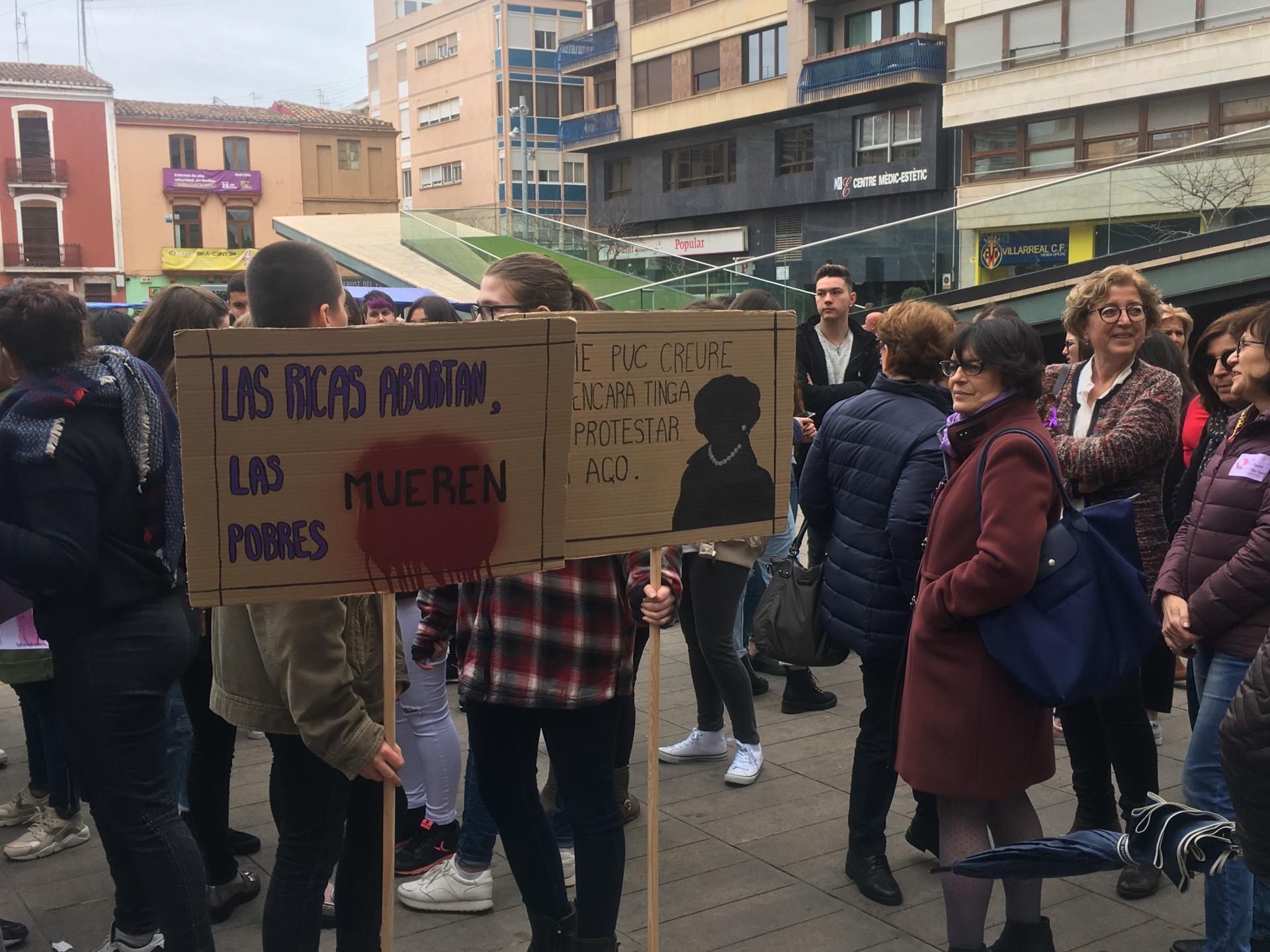 També s’ha col·locat un cartell a les portes de l’Ajuntament perquè totes les persones interessades hi pogueren deixar el seu missatge sobre la jornada. Pel que fa a la participació ha sigut nombrosa, ja que a pesar de la pluja amenaçant, arribant a caure algunes gotes que han alarmat als presents, finalment tan sols ha sigut un esglai. Centenars de persones, sobretot dones, han omplit la plaça. Estudiants, persones majors, xiquets i xiquetes, persones de diferents ètnies i religions i professions, totes a una, han fet un crit per a dir no a la injustícia que afecta les dones i no ens deixa crèixer, projectar-nos i ser lliures, que ens fa víctimes de violència i objectes d’una discriminació subtil però que igualment ens empresona, el sostre de vidre.