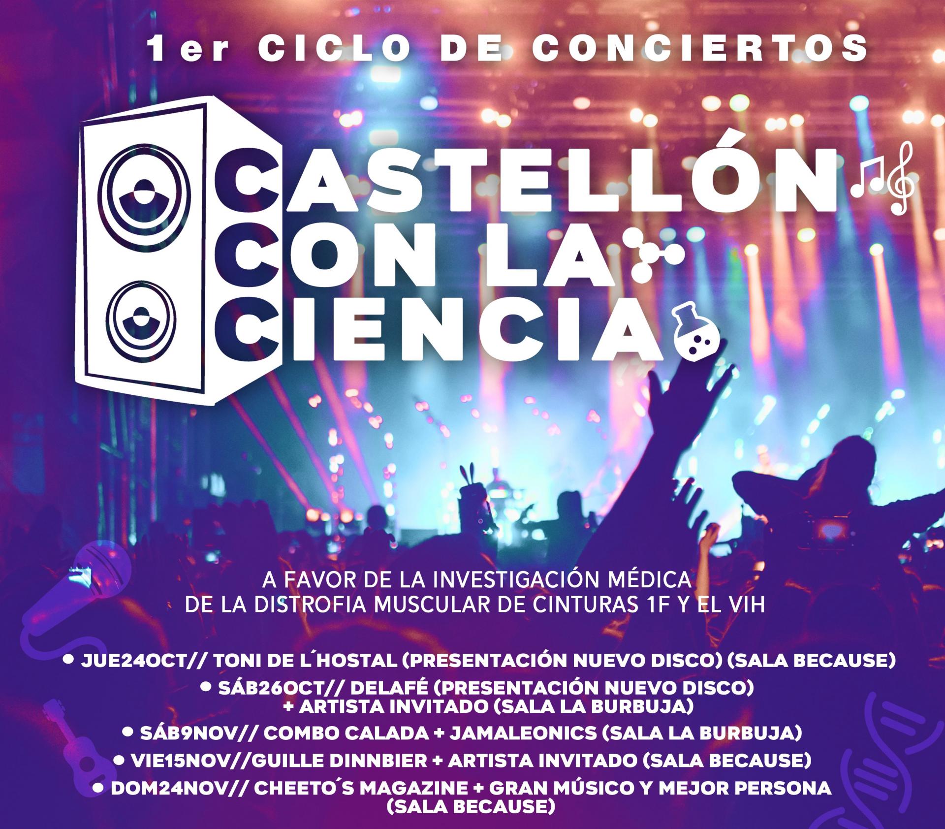 L'associació Conquistando Escalones posa en marxa a partir del 24 d'octubre un projecte “ambiciós i solidari”, segons ha qualificat el president de l'entitat, Abrahán Guirao. Es tracta del ‘I cicle de concerts: Castelló amb la ciència’ que persegueix un doble objectiu: recaptar fons per a investigar la Distròfia de Cintures que pateixen els seus membres i, al seu torn, “portar una oferta musical variada a Castelló, amb artistes de renom i seguiment de tota mena d'estils”.