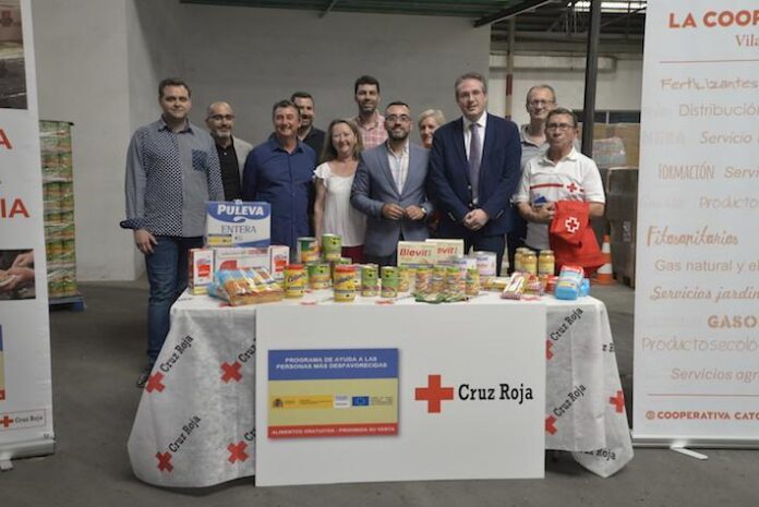 banco alimentosCreu Roja distribuirà 175.761,488 quilos d'aliments entre persones vulnerables de la província de Castelló fins al 30 de juliol. Comença així la primera fase del repartiment, que la Institució realitza a través de 41 entitats: 15 ajuntaments, dues mancomunitats, 13 assemblees locals i comarcals de Creu Roja i 11 associacions sense ànim de lucre que arribaran a 9.263 beneficiaris A més, la Cooperativa Catòlic Agrària de Vila-real cedirà les seues instal·lacions per a emmagatzemar i distribuir els aliments. Per aquest motiu, el subdelegat de Govern, David Barelles, ha visitat aquest matí la seu acompanyat pel vicepresident provincial de Creu Roja i responsable de l'àrea d'intermediació social, Antonio Fayos; així com per l'alcalde de la ciutat de Vila-real, José Benlloch, i els regidors de Serveis Socials, Proximitat i Economia de l'Ajuntament, Álvaro Escorihuela, Diego Vila i Xavi Ochando, a més del president de la Cooperativa Catòlic Agrària de Vila-real, Juanjo Ortells, entre altres autoritats.