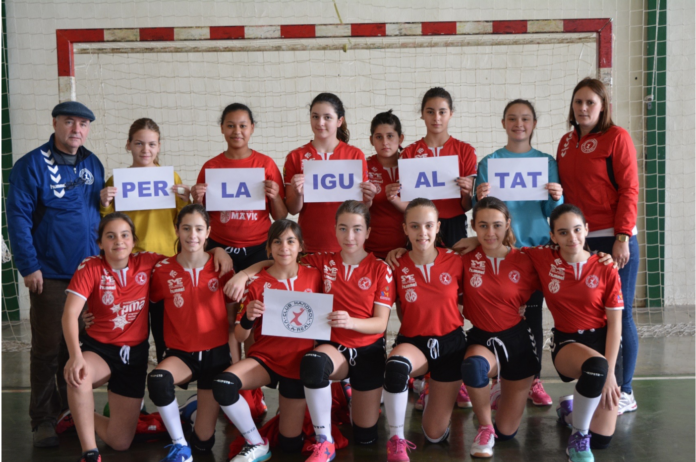Les xiquetes del infantil femení s’han fet ressò de la commemoració del 8 de març