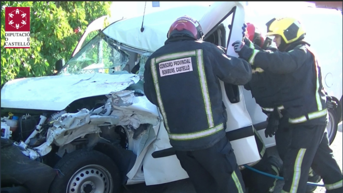 Efectius de bombers del CPBC del parc Plana Baixa han intervingut en l'accident i han excarcerat a un dels afectats, que estava atrapat i ha sigut evacuat a l'hospital.
