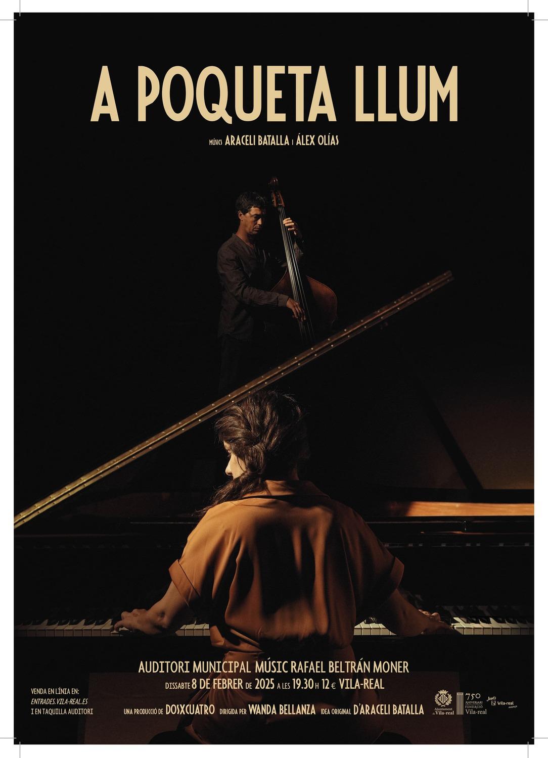 El dissabte 8 de febrer, a les 19.30 h, l’Auditori Municipal Músic Rafael Beltrán Moner acollirà el concert 'A poqueta llum', interpretat pel grup DOSXCUATRO.