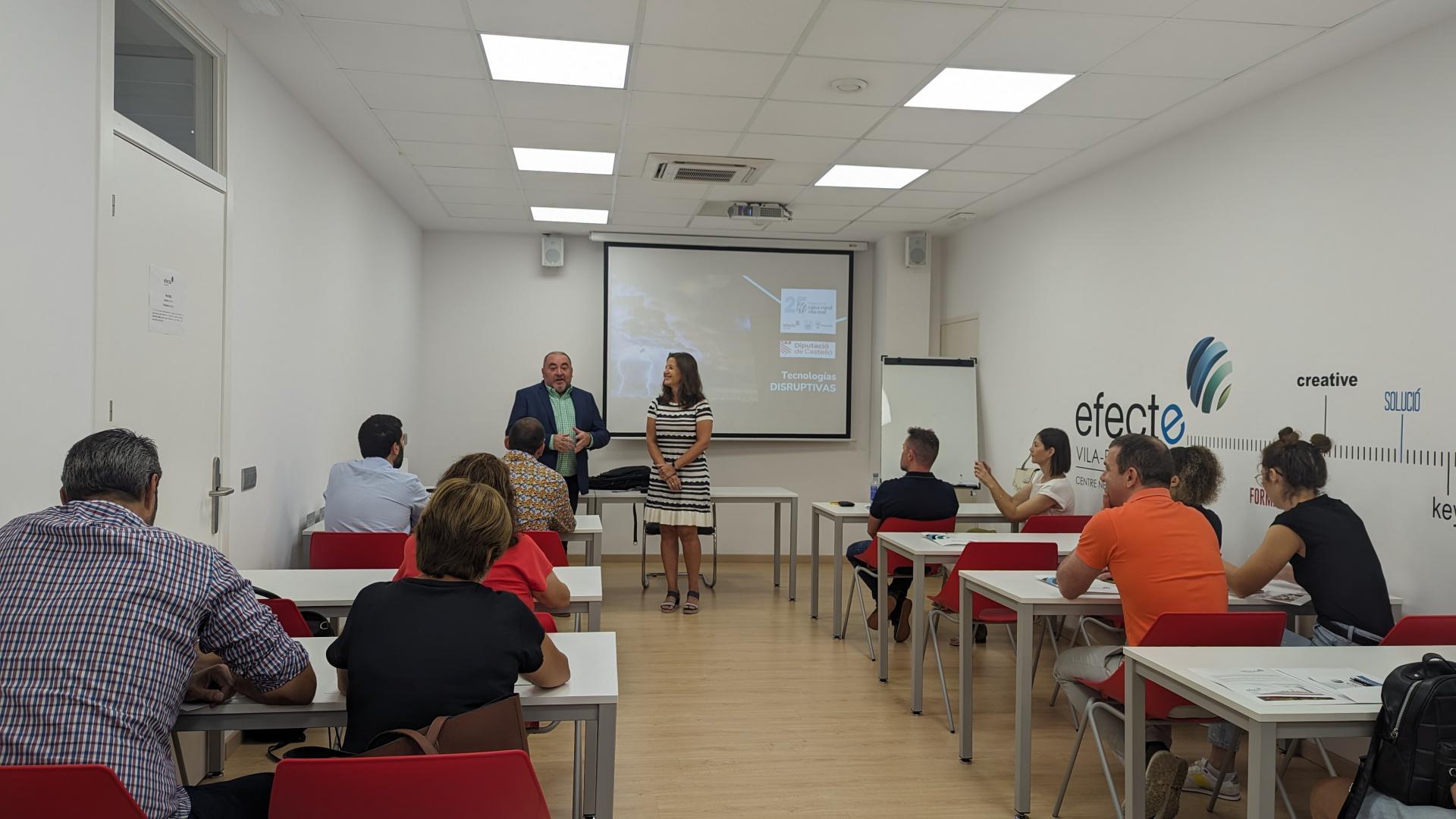 Fundació Caixa Rural Vila-real ha donat inici aquest matí al curs d'Emprenedoria digital i Lean Startup finançat per l'Excel·lentíssima Diputació de Castelló. El diputat provincial de Promoció Econòmica, Vicente Pallarés, acompanyat per la presidenta de la fundació, Sonia Sánchez, ha donat la benvinguda als alumnes d'aquesta formació que s'impartirà fins al pròxim 29 de setembre en el centre de negocis Efecte Vila-real.