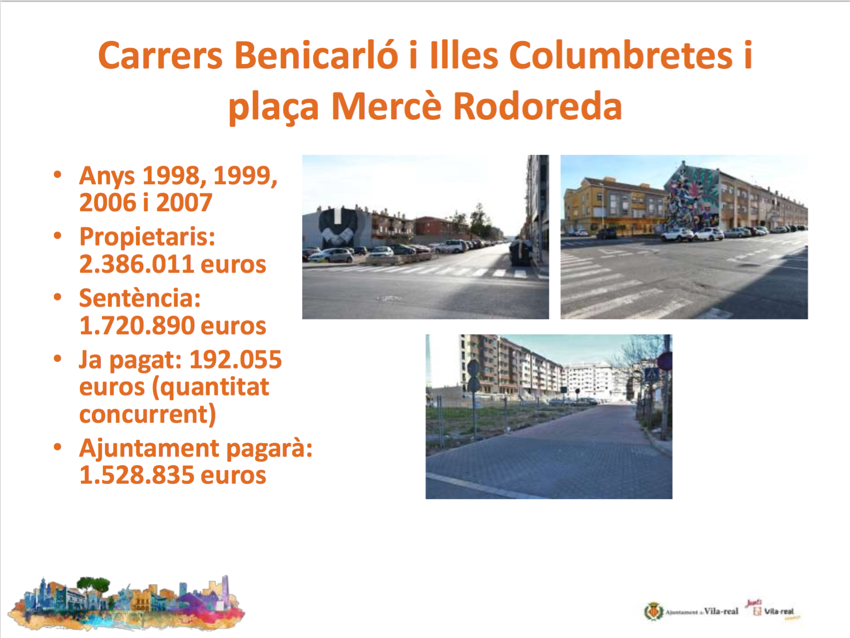 Finalment, es pagaran 421.827 euros corresponents a tres resolucions: l’obertura d’un tram del Camí els Voltes, prop de la Depuradora, el carrer Riu Palància, concretament la prolongació del carrer Pobla Tornesa, i la urbanització del jardí situat entre els carrers Furs de València i Molí. “La resta de resolucions les recorrerem per a intentar pagar el mínim”, ha subratllat Benlloch.
