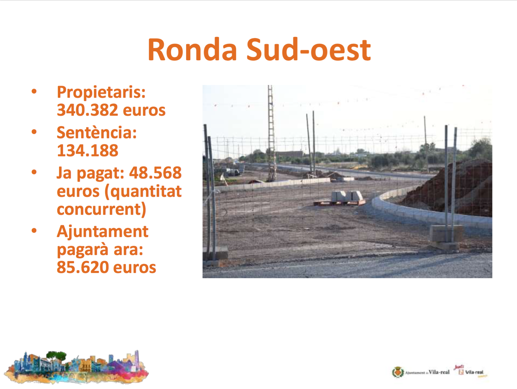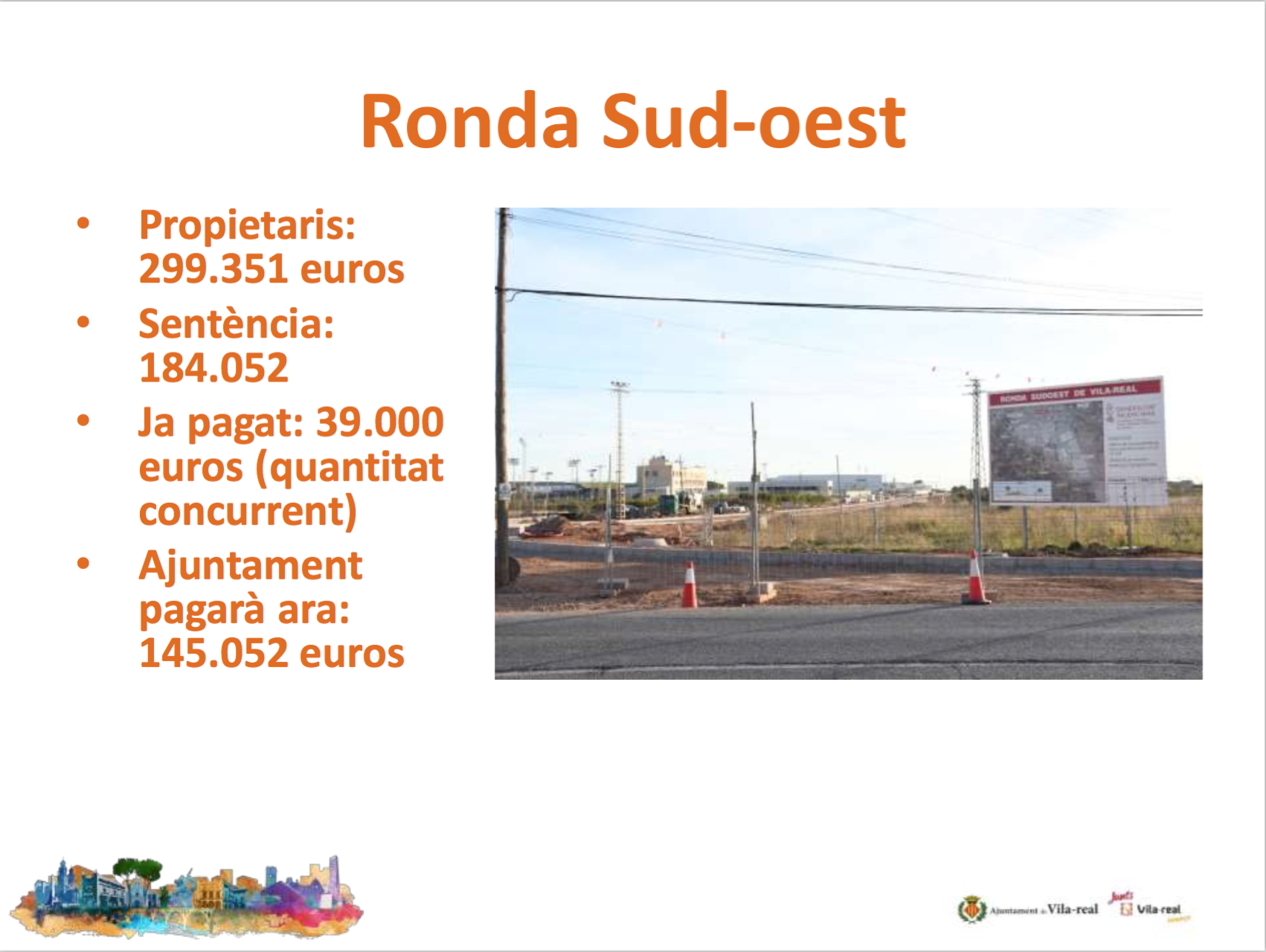 Quant a les sentències, el consistori ha de fer front a quatre sentències fermes del Tribunal Suprem, per valor de 2,1 milions d’euros que corresponen a l’aparcament situat entre el carrer Joanot Martorell i les avingudes Mediterrani i França; l’obertura dels carrers Benicarló i Illes Columbretes i la plaça Mercè Rodoreda; i dues sentències de propietaris que van recórrer la valoració de les expropiacions per la ronda Sud-oest.