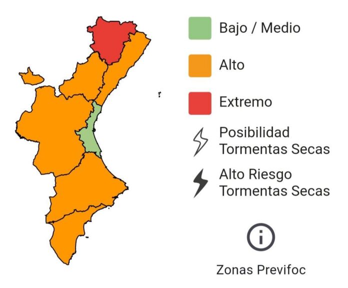 A més, les autoritats adverteixen de la possibilitat de tempestes seques en alguns punts, un fenomen que pot incrementar encara més el perill, ja que els llamps poden provocar focus d’incendi sense precipitació que ajude a apagar-los.