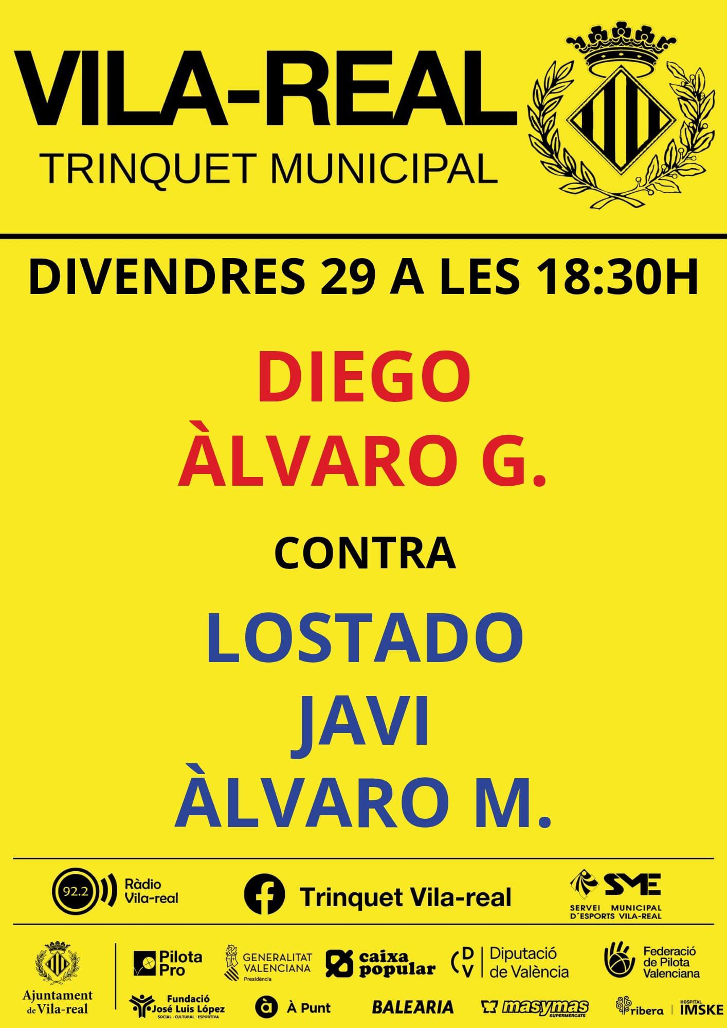 Diego i Álvaro G. s’enfrontaran a Lostado, Javi i Álvaro M. aquest divendres al Trinquet Municipal