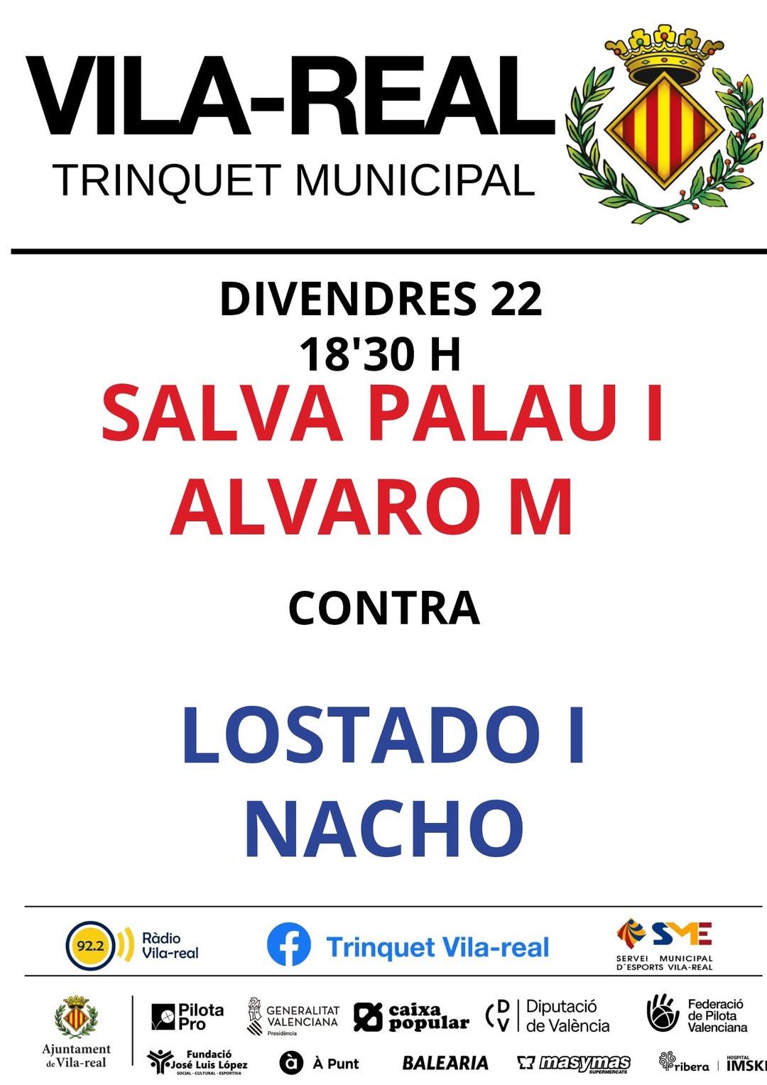 Rosa G. Llobat / Vila-real InformacióEl Trinquet Municipal de Vila-real serà aquest divendres 22 d’agost escenari d’una nova cita amb la pilota valenciana. A partir de les 18.30 hores, el públic podrà gaudir d’una partida de raspall que enfrontarà dues parelles de renom: Salva Palau i Álvaro M. contra Lostado i Nacho.