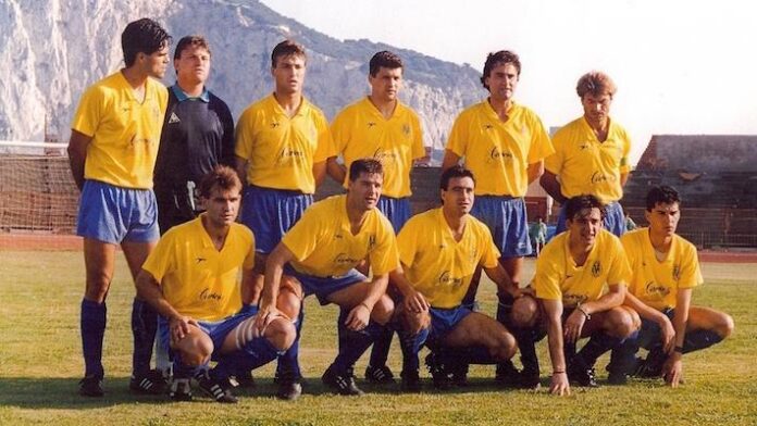 Aquest és l'equip que va aconseguir l'ascens a Segona Divisió A després de guanyar 1-2 al Linense. Fila superior d'esquerra a dreta: Guijarro, Navarro, Julio Pérez, Alcañiz, Lacalle i Reyes. Fila inferior d'esquerra a dreta: Planelles, Adriano, Víctor, Madueño i Estanis.