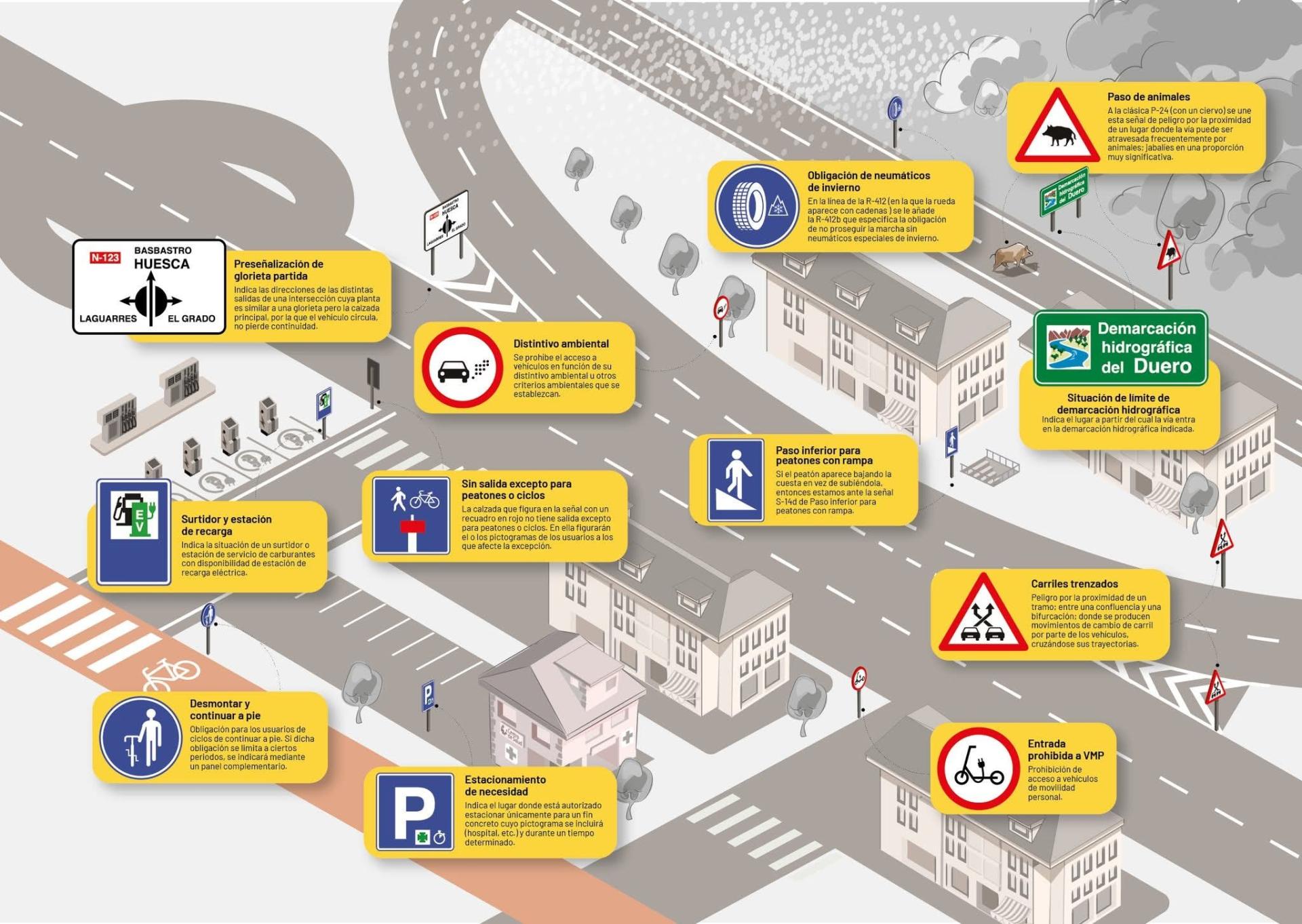 Entre les novetats, destaquen senyals relacionades amb l’ús de vehicles de mobilitat personal (VMP) com els patinets elèctrics, la recàrrega de vehicles elèctrics, o la prohibició d’accés segons distintius ambientals, a més de senyals que indiquen zones per a vianants i bicicletes o passos inferiors amb rampa per a facilitar l’accessibilitat.