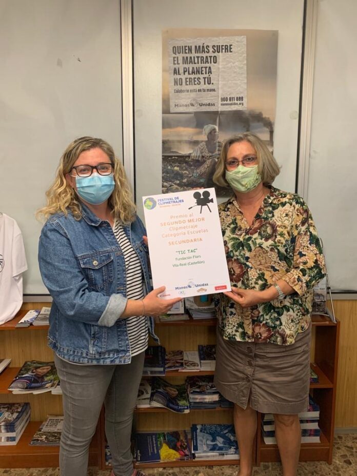 Sra. Eli Trilles, professora de l'IES Fundació Flors de Vila-real, va recollir el premi concedit per Mans Unides, al segon millor clipmetratge, en la categoria d'instituts de secundària, amb el títol 'Tic Tac' realitzat pels alumnes de 3r d'ESO.