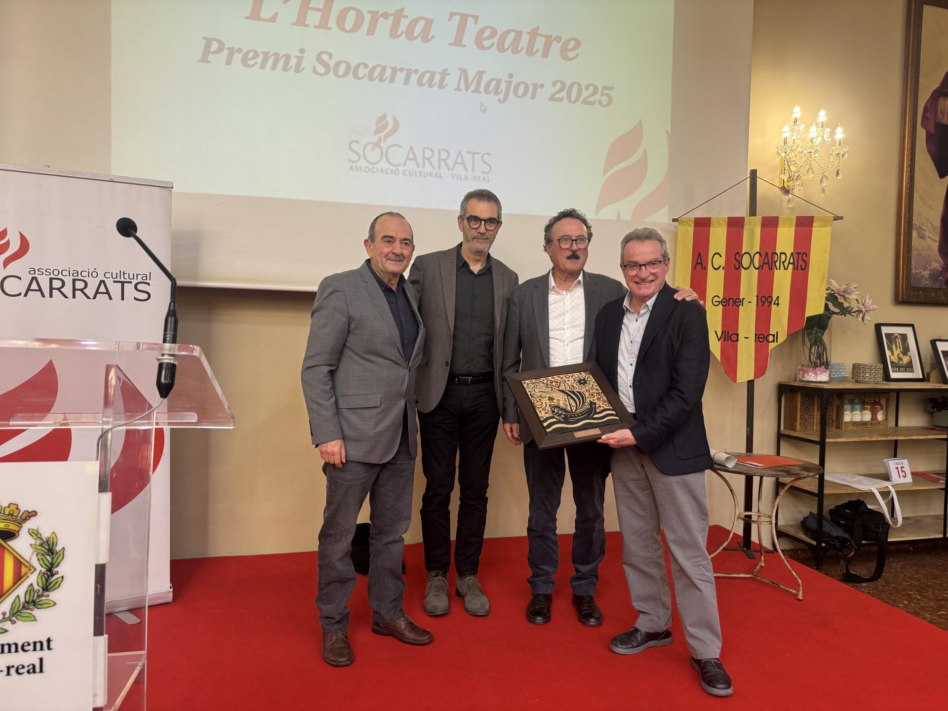 L'Associació Cultural Socarrats de Vila-real ha lliurat el prestigiós Premi Socarrat Major a la companyia teatral L'Horta Teatre en reconeixement als seus més de 50 anys de trajectòria. L'acte de lliurament ha comptat amb la presència del regidor de Normalització Lingüística, Santi Cortells, així com dels regidors Dora Saura i Emili Obiol.