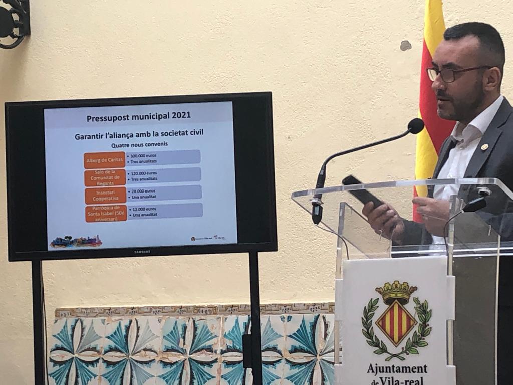 L’Ajuntament rebrà finalment 1 milió d'euros més de les aportacions de l'Estat (PIE), que s’ha fet amb l’aprovació dels PGE i que en desembre no estaven aprovats i altres 383.000 euros procedents de la Generalitat Valenciana per a nous serveis d'atenció social, per la qual cosa finalment els comptes se situen en 51,3 milions d'euros. L'alcalde ha detallat els eixos del pressupost: prudència i responsabilitat, optimització de recursos a través de nous contractes per a la millora de serveis, lluita contra la covid-19, gestionar el passat, el present i el futur i l'aliança amb la societat civil a través dels convenis amb 69 entitats als quals se sumen quatre nous, tal com ja va anunciar Benlloch al desembre: la construcció del nou alberg de Càritas (300.000 euros en tres anualitats); la restauració de la sala d'actes de la Comunitat de Regants (120.000 euros en tres anualitats); l'insectari de la Cooperativa Catòlic Agrària (20.000 euros) i el conveni pel 50 aniversari de la parròquia de Santa Isabel (12.000 euros). “Es tracta de projectes importants per al futur de la ciutat, que ja estan en marxa, i hem de complir amb el compromís adquirit, per la qual cosa els mantenim en el pressupost”, remarca el primer edil.