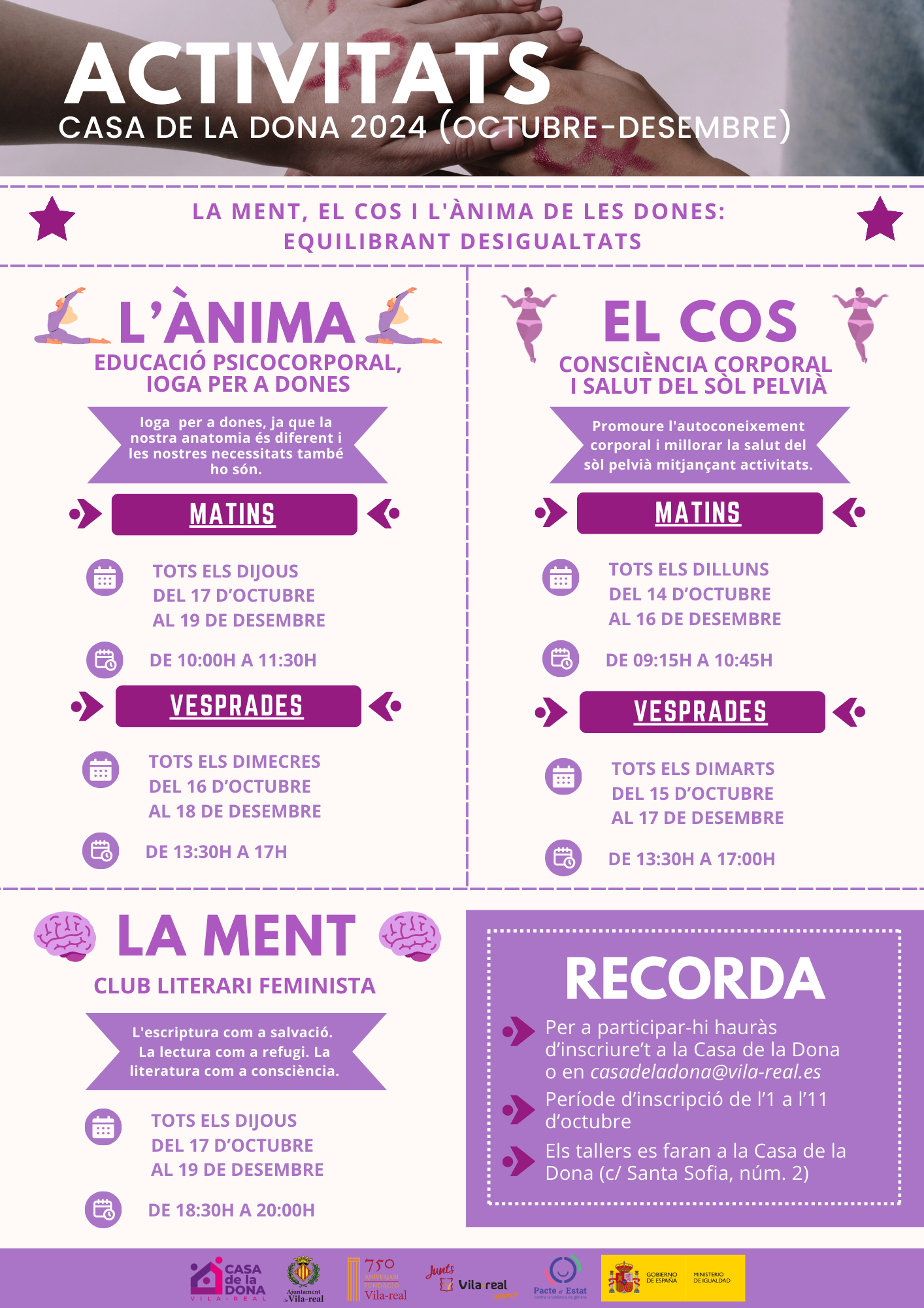 Casa de la Dona de Vila-real ha llançat el seu nou programa d'activitats per al període d’octubre a desembre de 2024, sota el lema