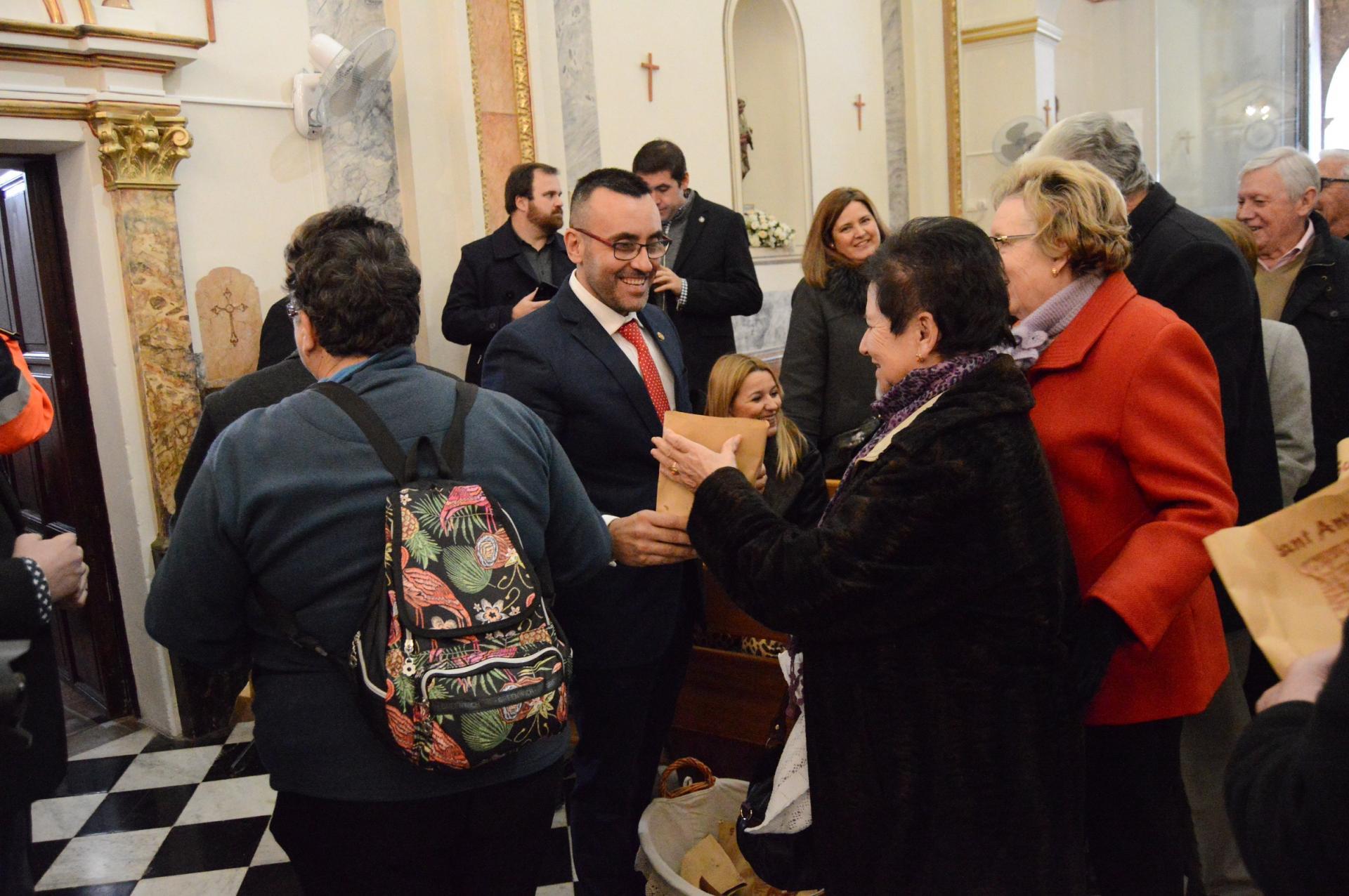 La festivitat de sant Antoni a Vila-real s’ha traslladat l’ermita de la Mare de Déu de Gràcia, on a les 13.00 hores ha tingut lloc la tradicional missa i repartiment de pans beneïts. En aquest acte, organitzat per les regidories de Tradicions i d’Ermita, s’han distribuït uns 1.200 panets, dels quals 100 estan elaborats sense glútens. Una part dels panets s’ha portat a les residències d’ancians.