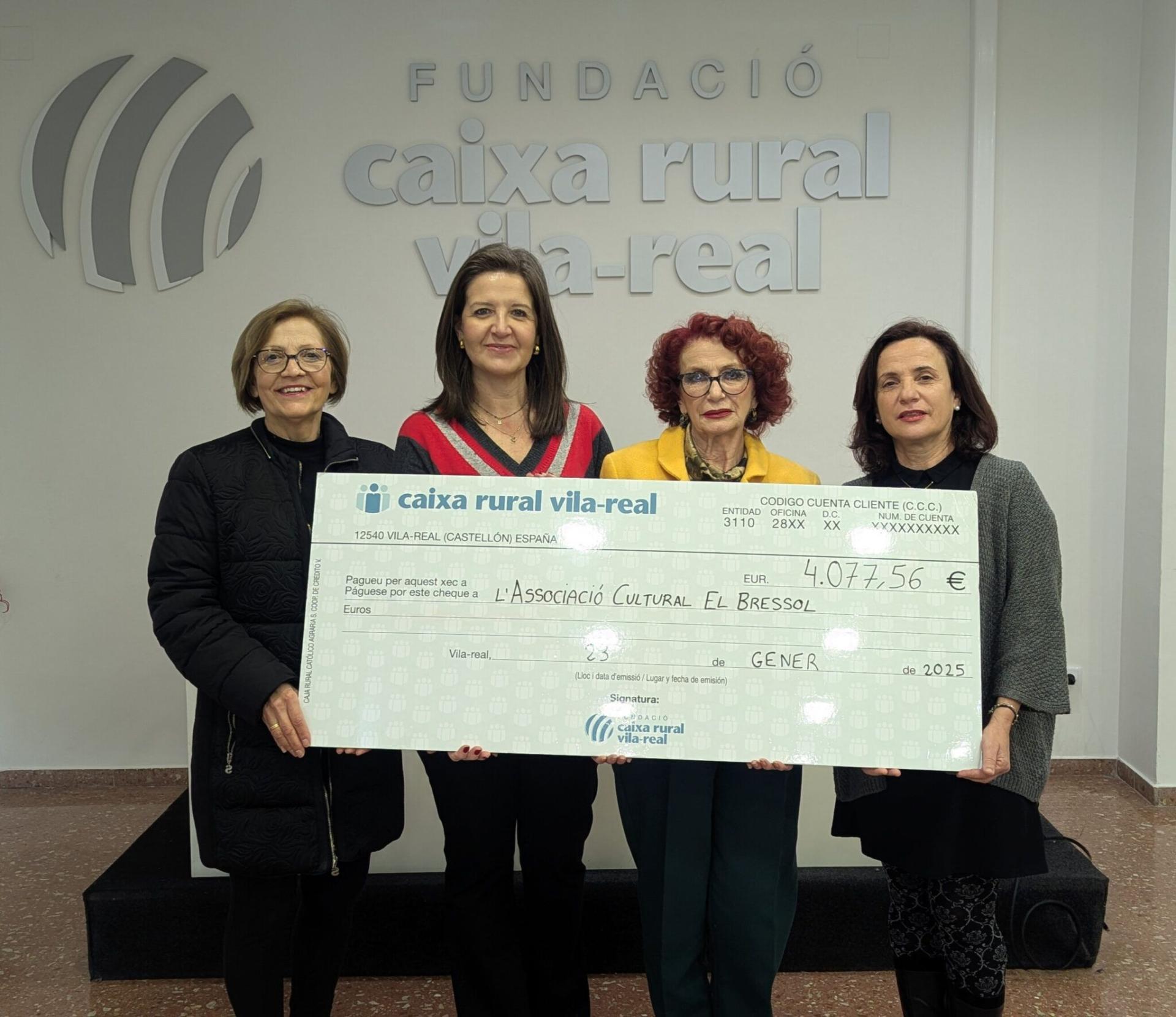 La Associació Cultural El Bressol ha rebut un xec per valor de 4.077,56 euros, corresponent al premi 'Generant valors' atorgat per la Fundació Caixa Rural Vila-real el passat mes d'octubre. Aquest reconeixement no només representa un suport econòmic significatiu, sinó també un impuls a la tasca cultural i social que l'associació du a terme a Vila-real amb el seu projecte 'Centre d'intercanvi del coneixement'.
