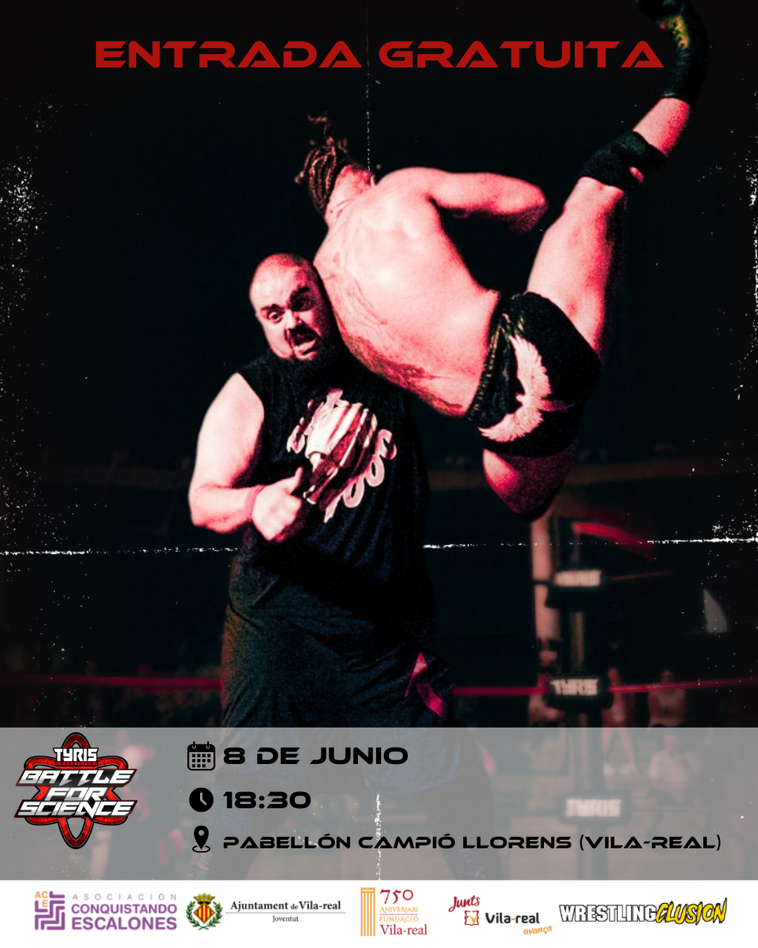 L'Asociación Conquistando Escalones i Tyris Wrestling, amb la col·laboració de l'Ajuntament de Vila-real a través de la Regidoria de Joventut, han unit forces per a la celebració d'una demostració de wrestling èpic i mai abans vist a Vila-real que servirà per a recaptar fons per a donar amb una tractament o cura per a la Distròfia Muscular de Cintures 1F-D2.