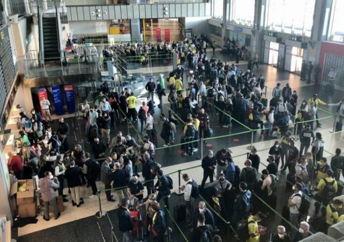 Els aficionats que viatjaven hui tindran un acompanyant d'última hora. El president del Villarreal CF, Fernando Roig, dóna negatiu en el test PCR i serà un més en l'expedició groga.