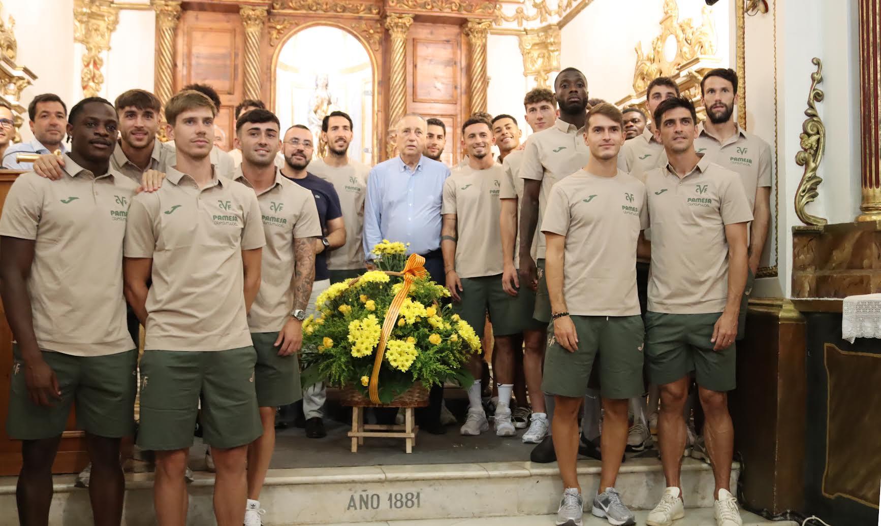 L’alcalde de Vila-real, José Benlloch, junt amb altres representants de la corporació municipal, ha acompanyat el Villarreal CF en la tradicional ofrena als patrons de la ciutat, realitzada enguany pel primer equip i part del cos tècnic i directiu.