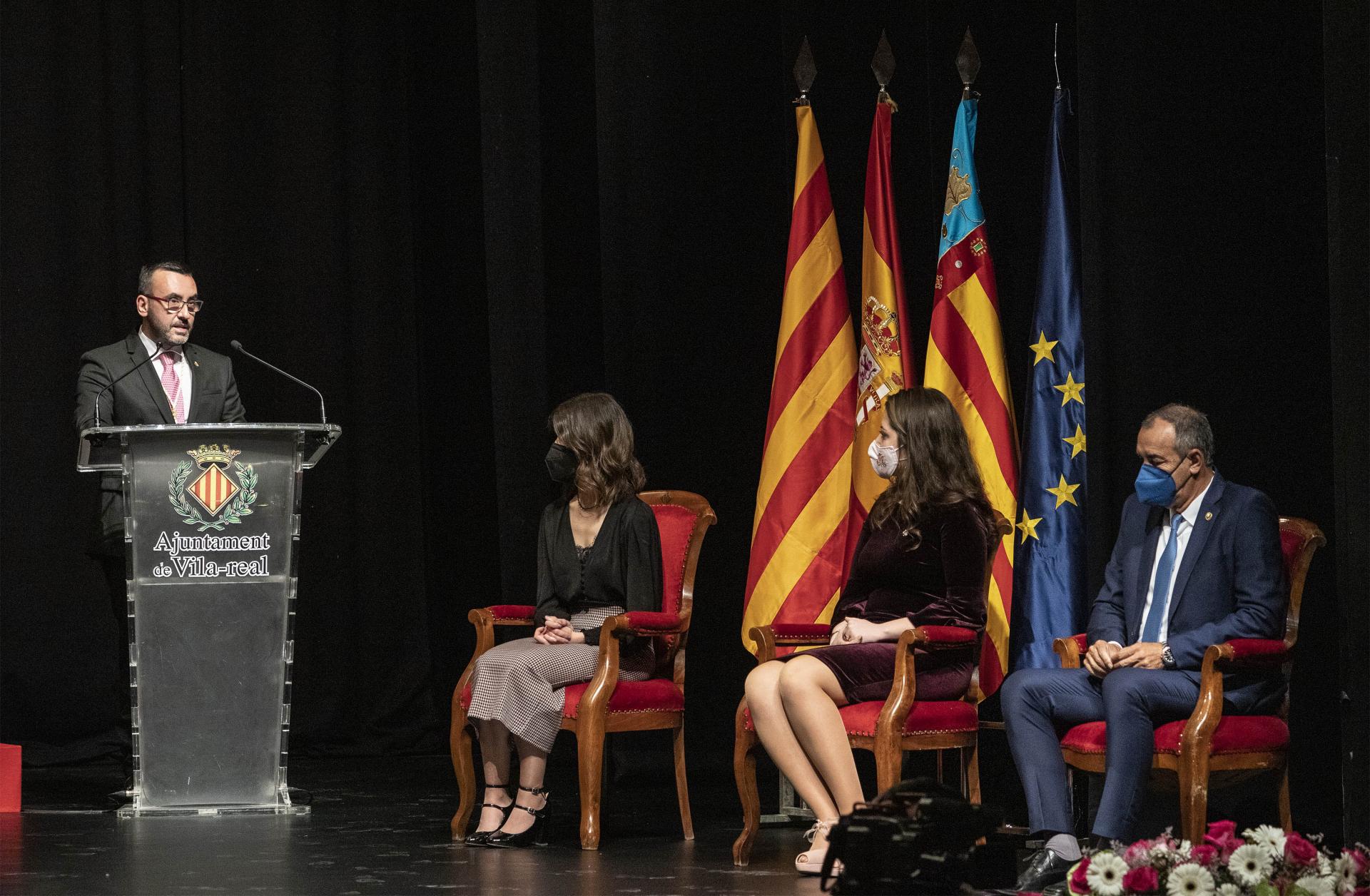 Per part seua, l’alcalde, José Benlloch, ha iniciat el seu discurs amb un record per a les víctimes de la covid-19, especialment per als 82 vila-realencs i vila-realenques morts, així com per a totes aquelles persones que estan patint les conseqüències de la crisi econòmica que ha provocat la pandèmia. Benlloch ha assegurat que, precisament a causa dels estralls que ha causat el virus, “el dia de hui adquireix un significat transcendent, ja que ens permet retrobar-nos perquè els col·lectius guardonats puguen exhibir els millors valors humans de la ciutat de Vila-real. Valors que ara són més necessaris que mai, i que ens ajudaran a renàixer i a superar, amb l’esforç de tots i totes, junts, els reptes que la pandèmia ens ha posat per davant a tot el món”.