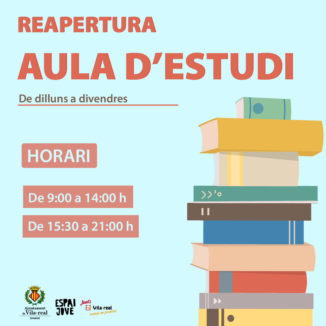 L’Espai Jove facilita als estudiants de Vila-realla preparació dels exàmensi, per a això, ha reobert la seua sala d’estudi amb un horari ampliat. La sala, que estarà oberta de 9.00 a 14.00 i de 15.30 a 21.00 hores, se suma a la reobertura de l’aula d’estudi de la BUC, que es ve utilitzant ja en les últimes setmanes amb una mitjana de 45 usuaris cada dia.