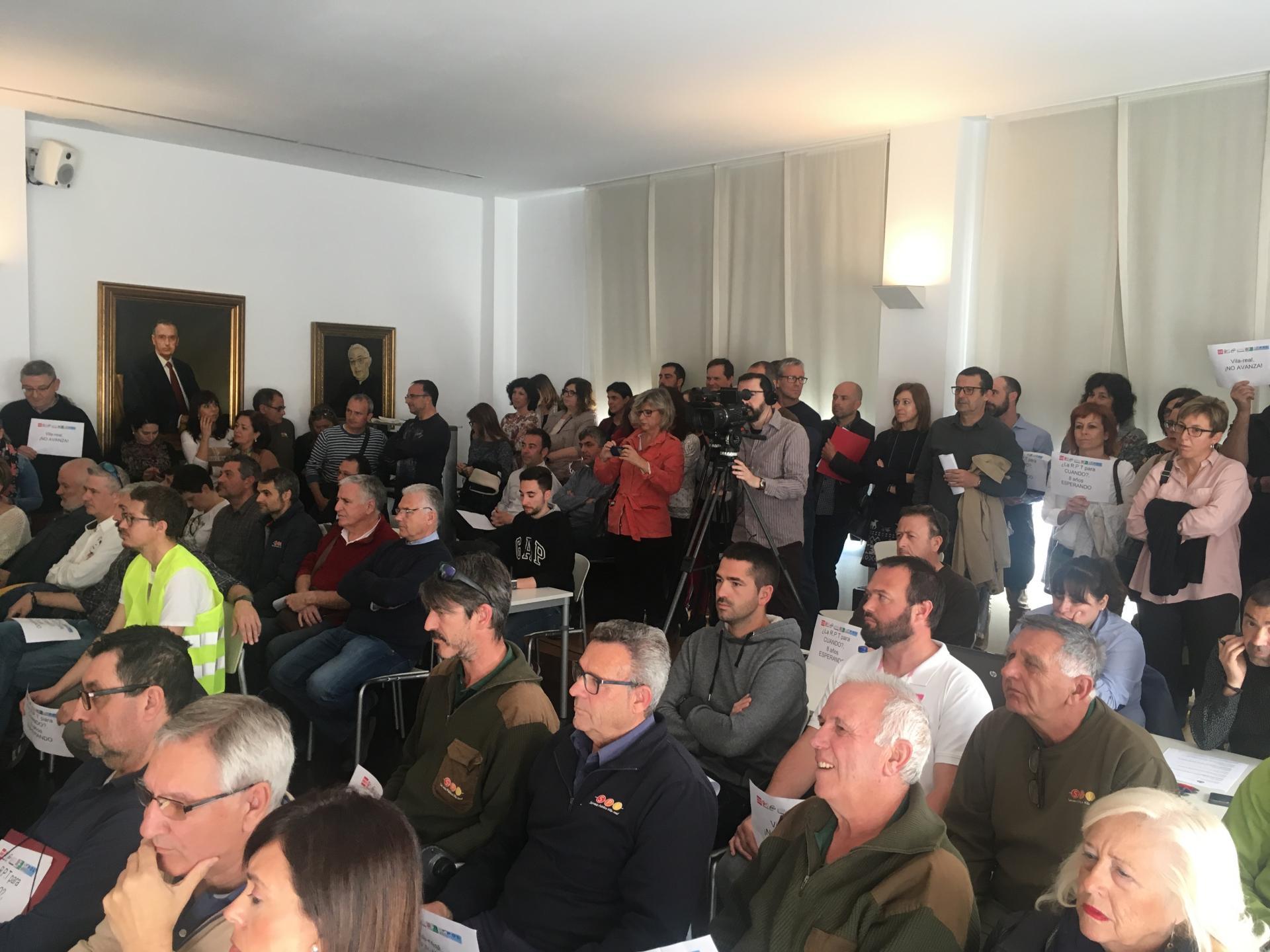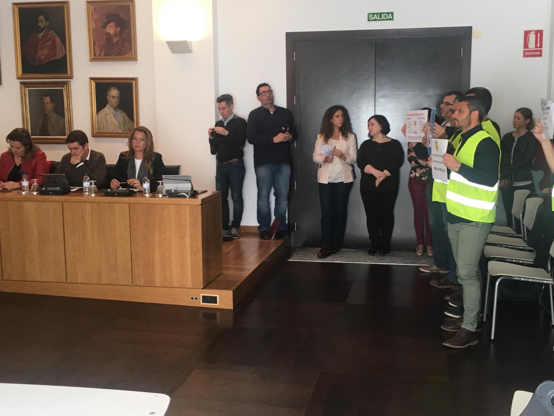 Vila-real acomiada la legislatura amb sabor agredolç i és que la sessió semblava que s’anava a produir sense cap incidència a banda de les acusacions habituals entre equip de govern i oposició. Però no ha sigut així, ja que la sala de plens s’ha omplit de gom a gom amb mig centenar de funcionaris que han elegit l’última sessió plenària de la legislatura per a fer la seua denúncia. Fins a set sindicats han convocat la concentració per a denunciar públicament la falta d’interés per part de l’equip de govern en las negociacions de la Relació de Llocs de Treball (RPT) i del compliment de la implantació del 100% de la Incapacitat Laboral Transitoria (ILT), entre altres assumptes”, resava la convocatòria. La cara d’alcalde i regidors era un poema i és que fins que s’ha tractat el tema de l’aprovació del règim contributiu en situació d’ILT en el bloc d’assumptes d’urgència la tensió es respirava en l’ambient.