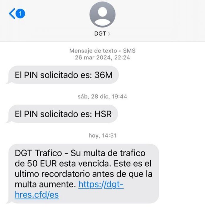 La Policia Local de Vila-real alerta la ciutadania sobre una nova estafa mitjançant SMS en què es suplanta la Direcció General de Trànsit (DGT). En aquest missatge, s’avisa d’una suposada multa de trànsit pendent de pagament (normalment de 50 €) i s’inclou un enllaç sospitós que imita la imatge oficial de la DGT.