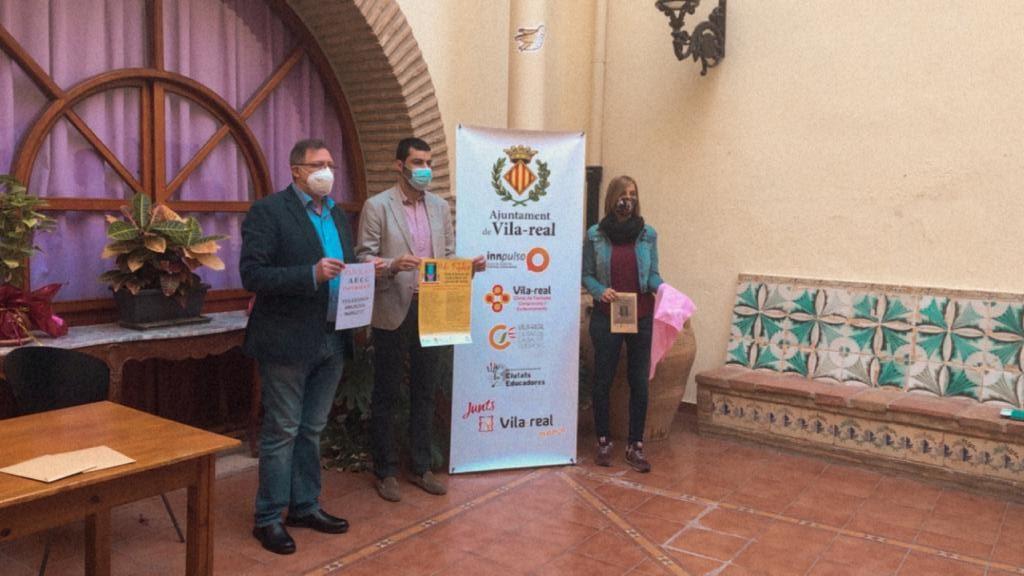 El regidor de Serveis Socials, Álvaro Escorihuela, el president de l'AECC de Vila-real, Paco Bielsa i la vicepresidenta,