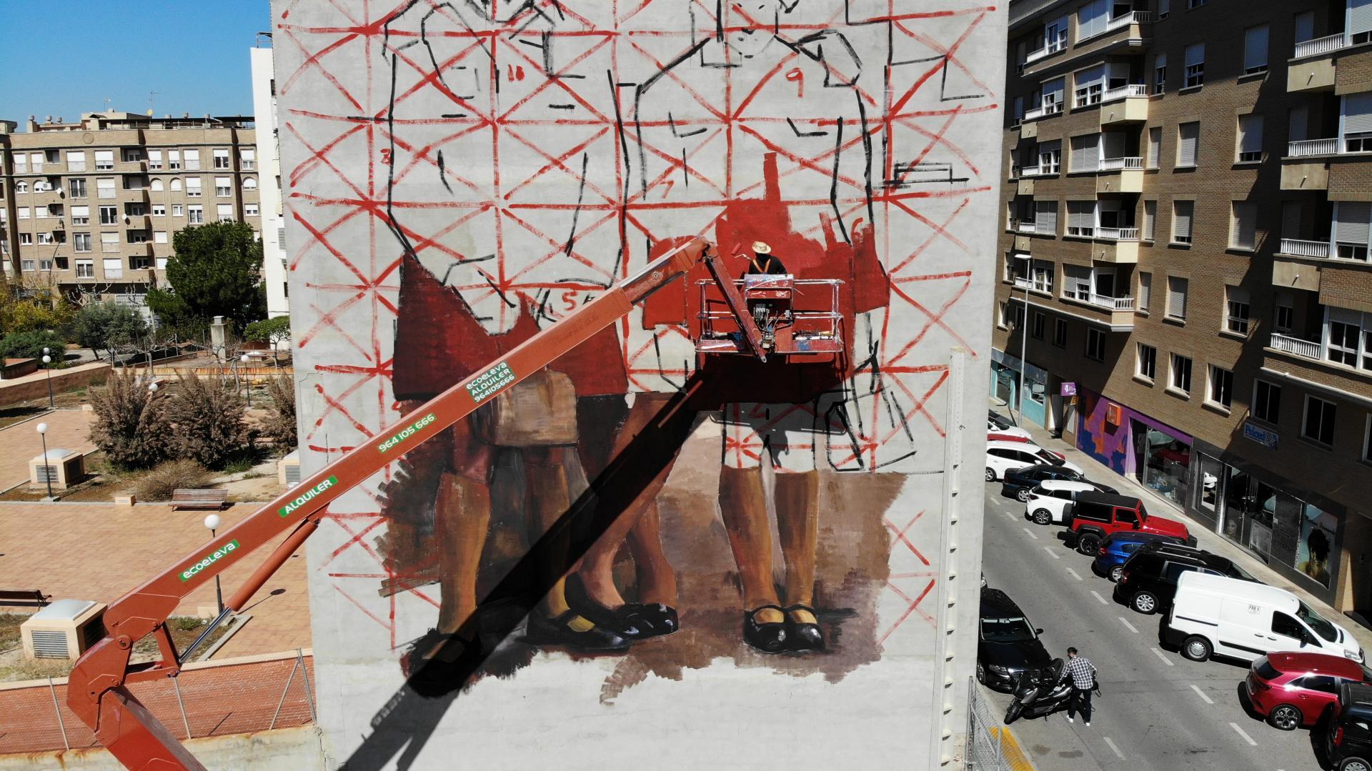 Comencen a apreciar-se els detalls del mural que està realitzant-se en el carrer Pintor Gumbau de Vila-real (zona nord) i que a càrrec de l'artista Mohamed L'Ghacham preten convertir-se en el més gran realitzat a la ciutat fins avui. Amb 25 metres d'alt i 12 d'amplària aquest mural forma part de la intervenció urbana que es realitza en la mostra TEST.