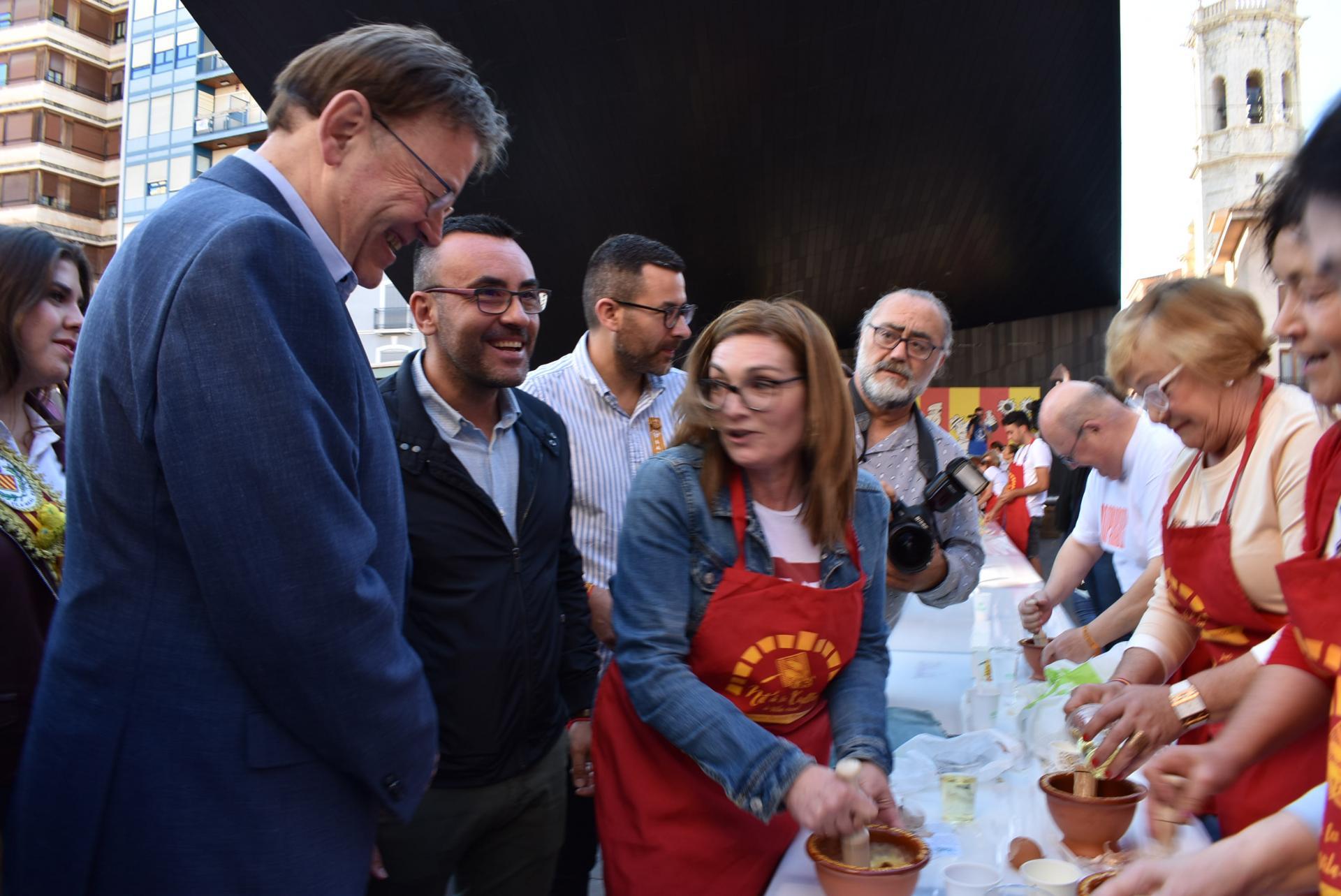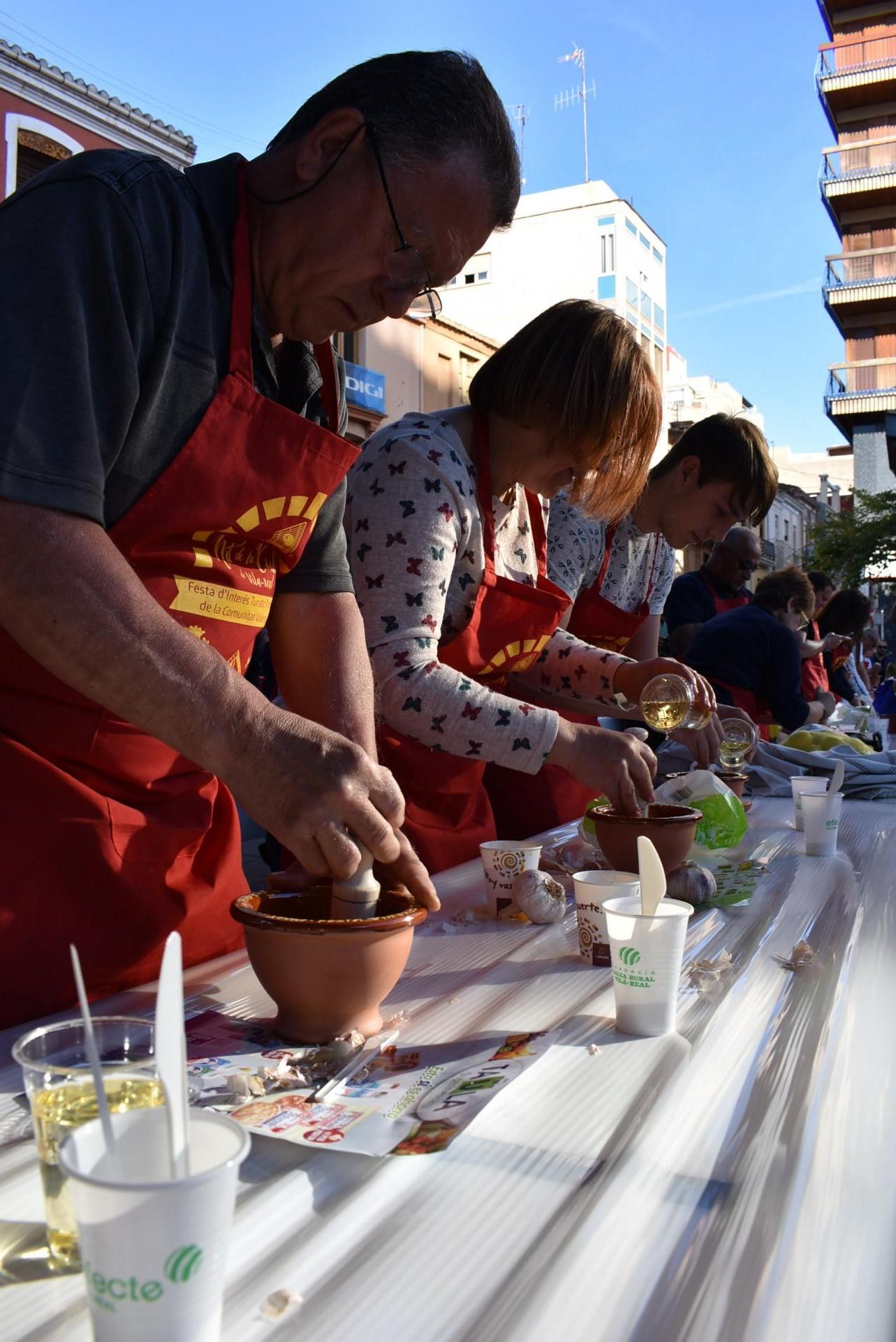 A les 19.00 ha començat l’elaboració d’allioli organitzada abans de la xulla per a commemorar la recent declaració de forma simbòlica. Cal recordar que la Junta de Festes ha preparat fins a mil morters i a canvi d’un donatiu de dos euros que es destinarà al projecte XiCaEs de Caixa Rural tots els assistents han rebut tots els ingredients que necessita.