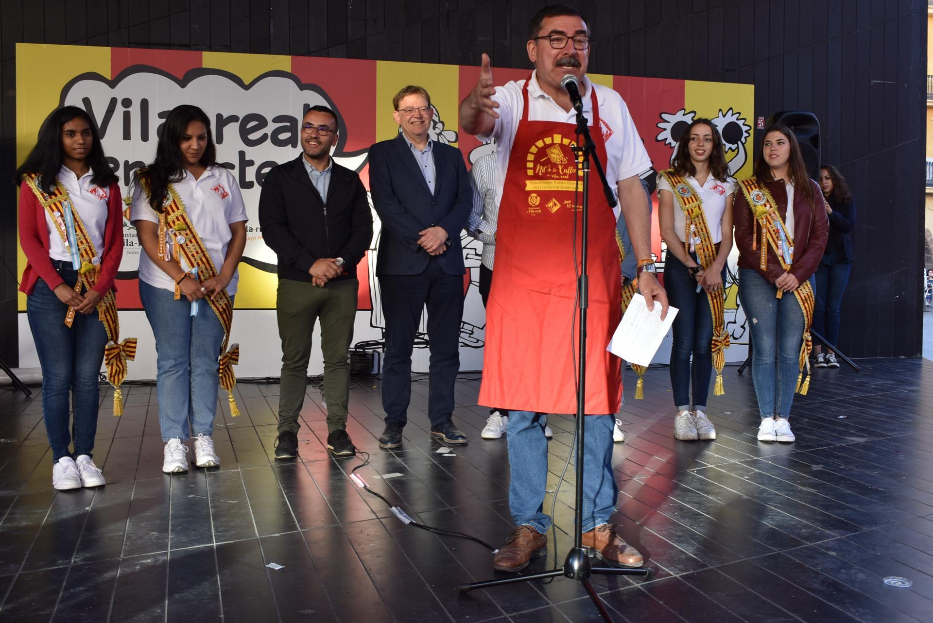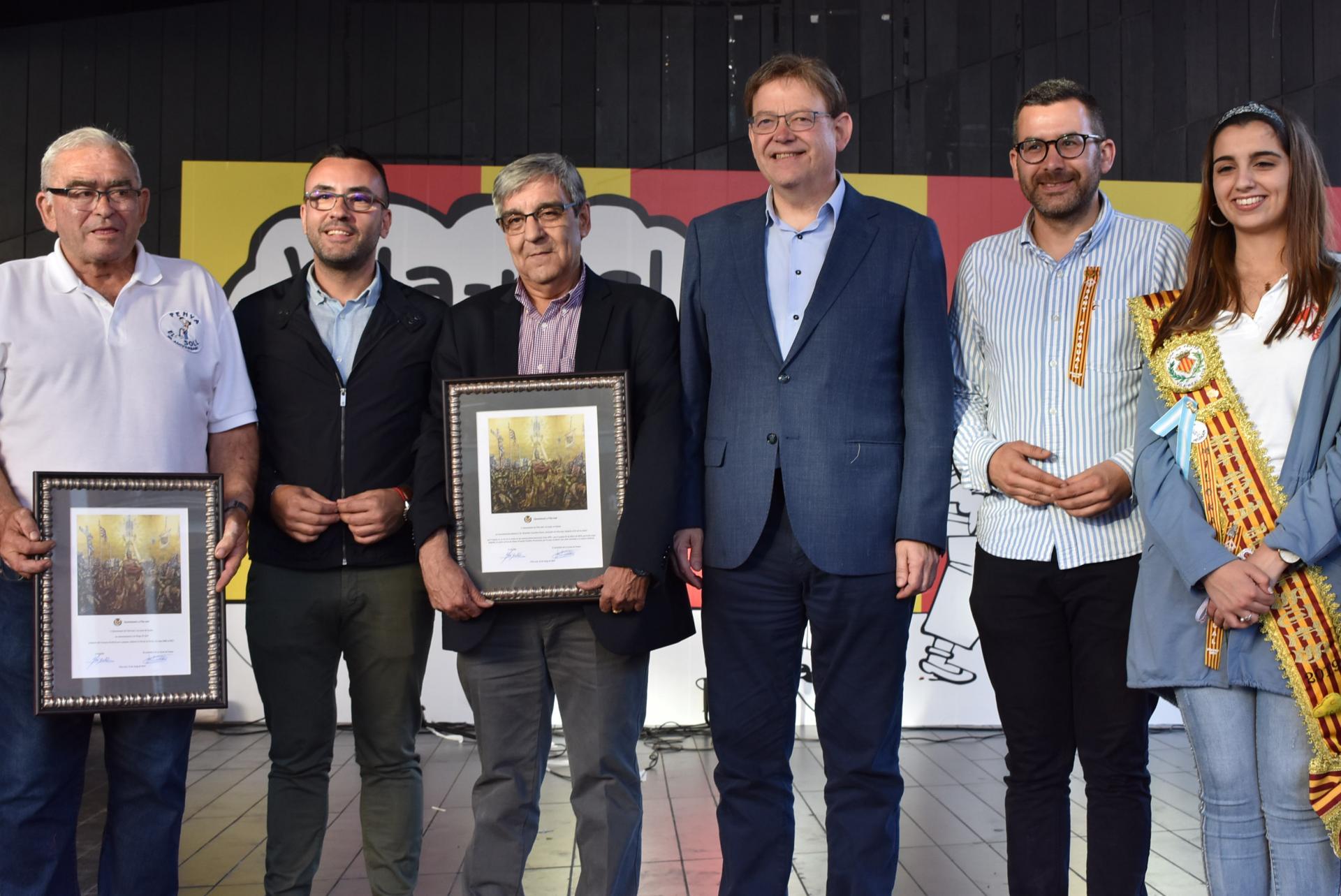 L’alcalde, José Benlloch, i el president de la Generalitat en funcions, Ximo Puig, han estat els encarregats de guardonar, a títol pòstum, a Batiste Carceller, exalcalde de Vila-real que va instaurar aquesta tradició l’any 1979 -ha arreplegat el guardó el seu familiar Pascual Esteller- i a la Penya El Soll -Ricardo Broch-, creadora del concurs d’allioli entre el 2006 i 2011.