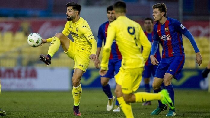 La primera part va ser de domini altern. Pau Francisco Torres, que ja va debutar amb el primer equip davant el Toledo en Copa del Rey, va marcar el primer gol del encontre. El jugador de Vila-real va rematar de cap després d'una bona assistència de falta de Leo Suárez en el minut 14. No obstant açò, els blaugranes van estar prop d'empatar, però Aleñá no va poder superar el mà a mà amb Cantero, que va efectuar un partit impecable.