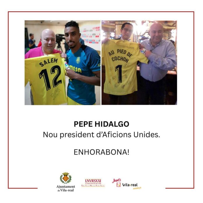 L’Ajuntament de Vila-real ha felicitat Pepe Hidalgo per la seua elecció com a nou president d’Aficions Unides, l’entitat que aglutina les 34 federacions de seguidors de Primera, Segona, Primera RFEF i Segona RFEF.