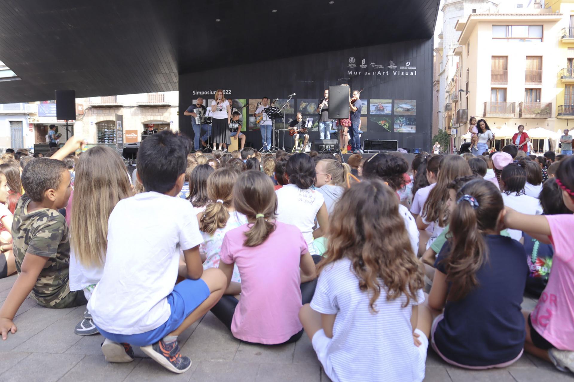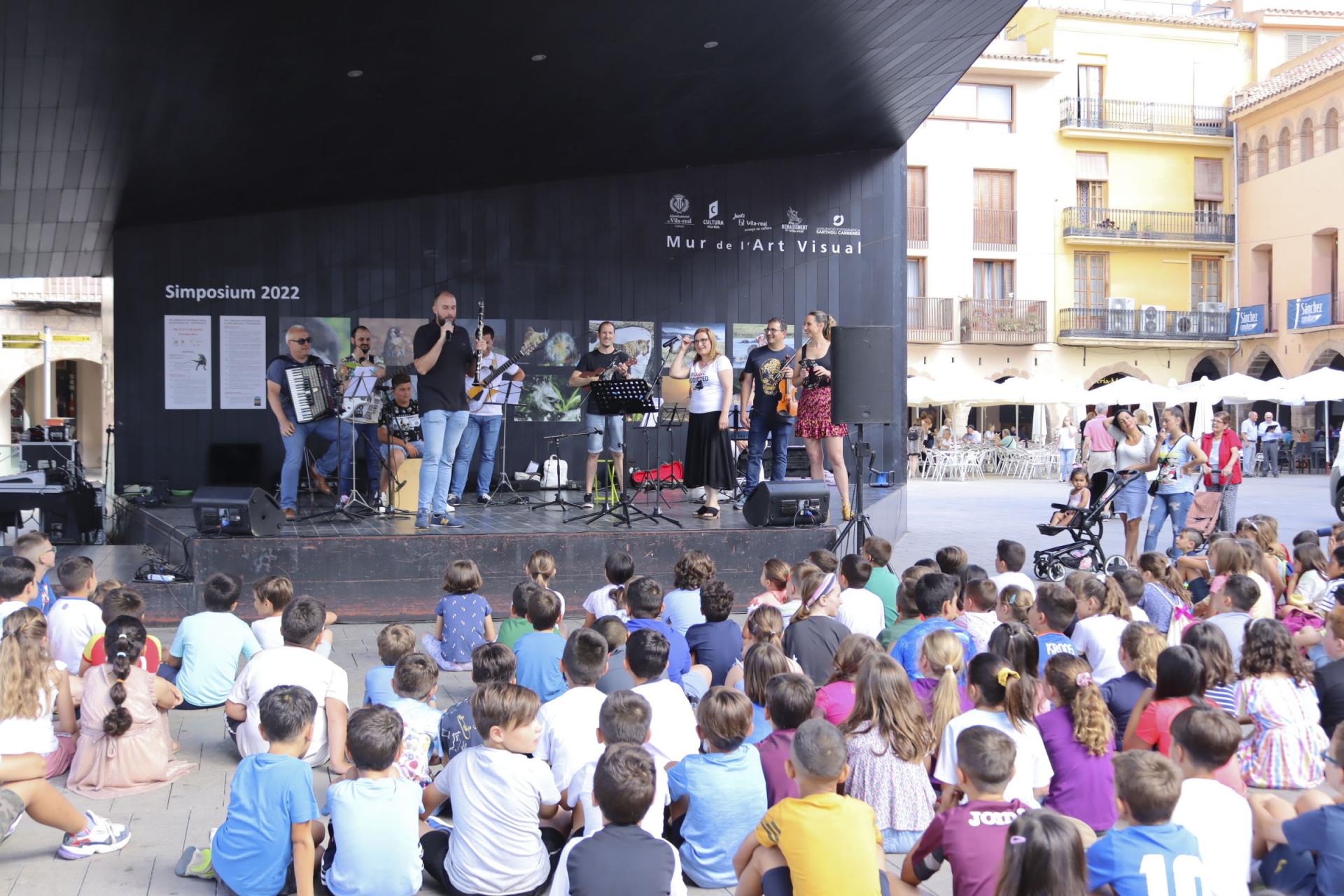 La plaça Major ha sigut escenari aquest matí del concert didàctic per als alumnes de tercer de Primària organitzat pel Seminari de mestres de música de Vila-real. En l’activitat han participat xiquets i xiquetes de diferents centres educatius de la ciutat i ha comptat també amb l’assistència de regidors i regidores de la corporació municipal.