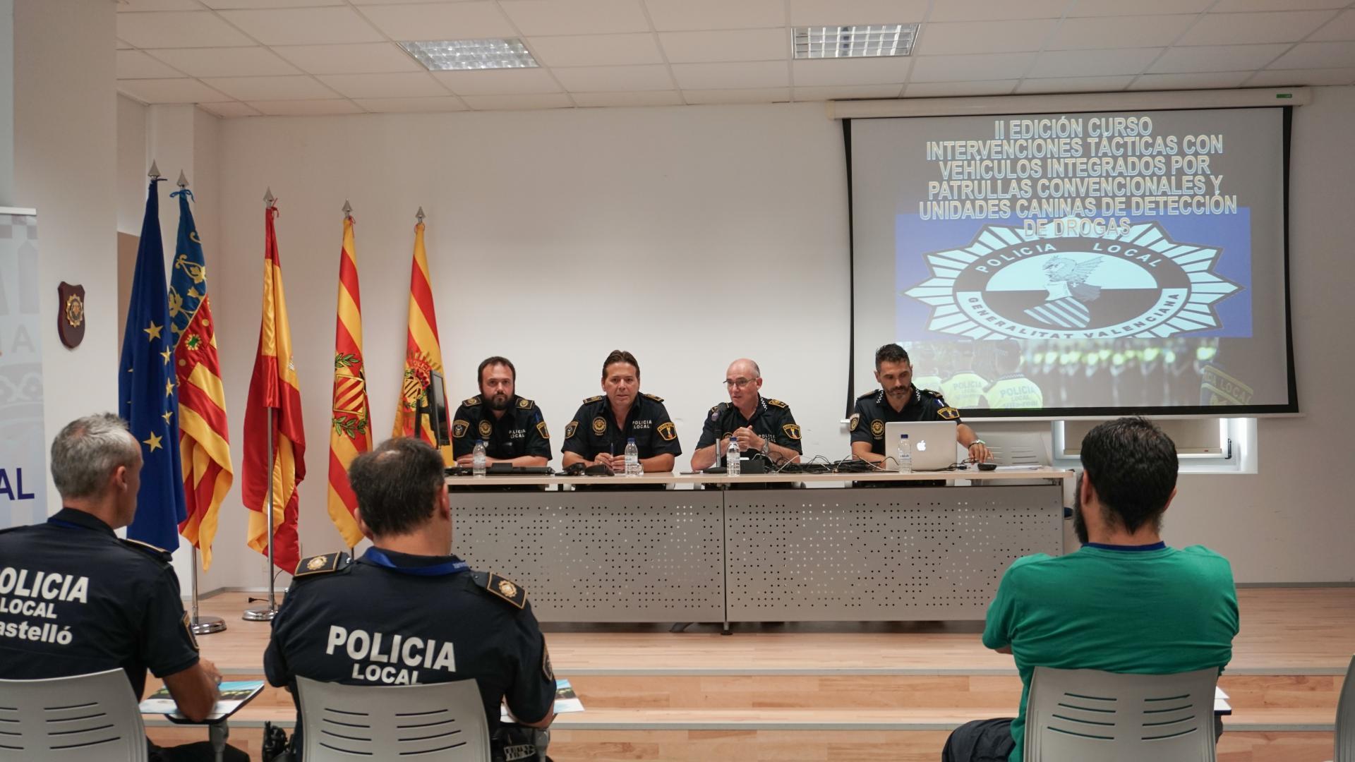 La sala de formació de la Policia Local ha acollit avui el curs ‘Intervencions tàctiques amb vehicles i controls integrats per patrulles convencionals i unitats canines de deteccions de drogues’, amb l’objectiu de seguir formant els agents del cos.
