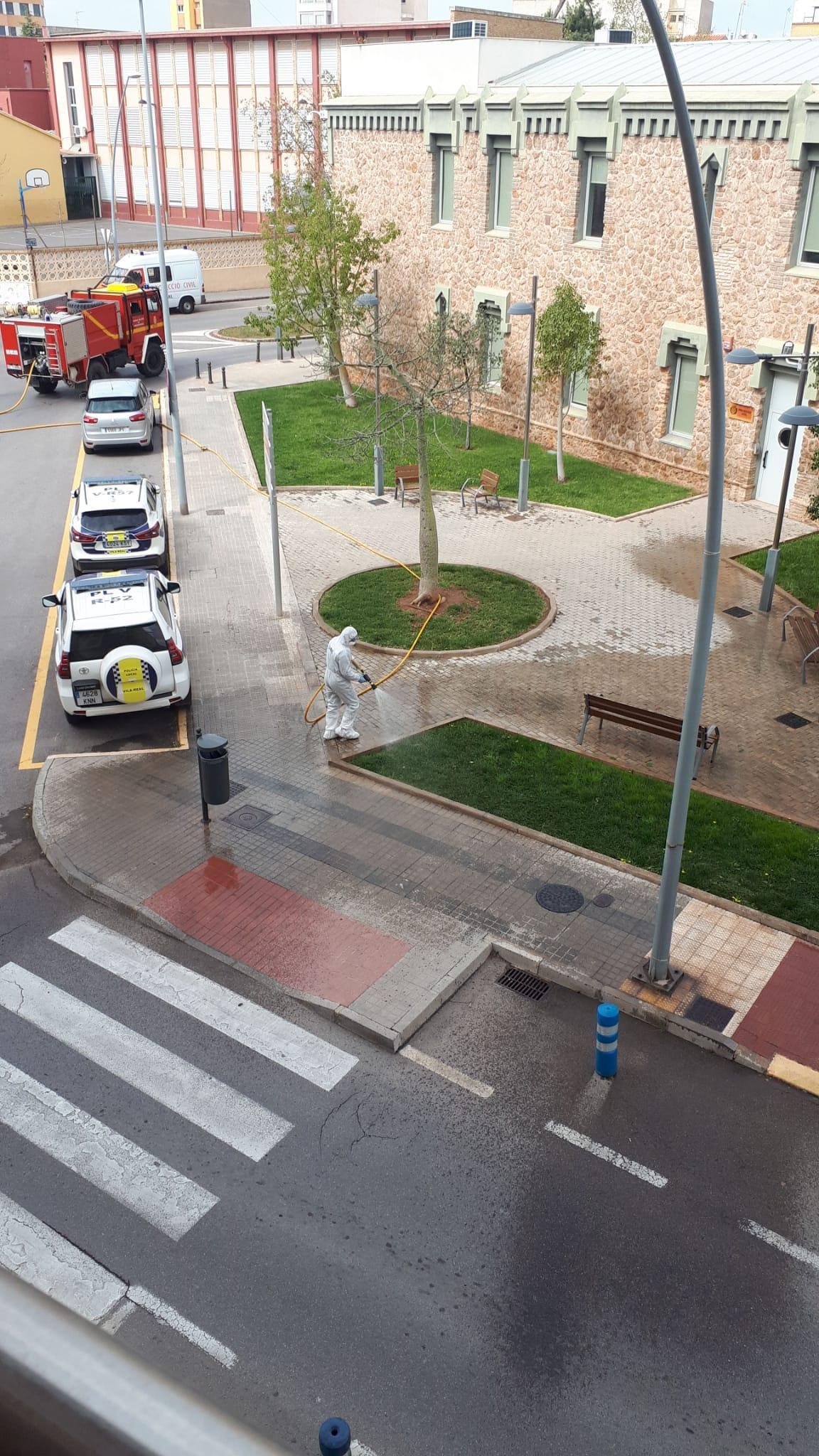 El cos de seguretat ha recorregut els carrers de Vila-real demanant el complement de les instruccions de l'Estat d'Alarma. L'UME neteja i desinfecta aquest dijous les zones més concorregudes de la localitat per a evitar la propagació de coronavirus