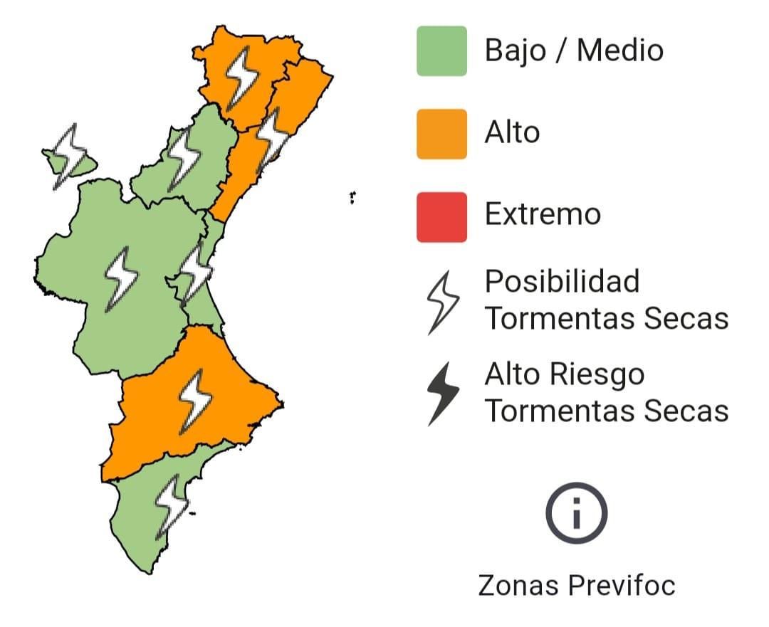 Malgrat aquesta situació més favorable al sud de Castelló, les autoritats insisteixen a mantindre la prudència, ja que al llarg de la jornada poden produir-se tempestes seques en tot el territori valencià. Aquest fenomen, caracteritzat pels llamps sense precipitació associada, pot provocar l’inici de focs en zones forestals, fins i tot en àrees amb risc baix.