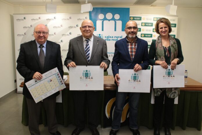 El president de la Fundació Caixa Rural, Enric Portalés; el responsable del contingut del calendari, Jacinto Heredia, i la directora de Càritas, Carmen Miralles, han presentat l'anuari, que s'inscriu en les activitats de Nadal promogudes per la Fundació, entre les quals es troben el repartiment de lots nadalencs –a partir del 28 de novembre-; o els concerts dels dies 7 i 18, a més de cinema en valencià. En l'edició de l'almanac han col·laborat, a més del departament de Normalització, la il·lustradora Sara Heredia, el dissenyador gràfic Toni Tirado i la Impremta Canós.