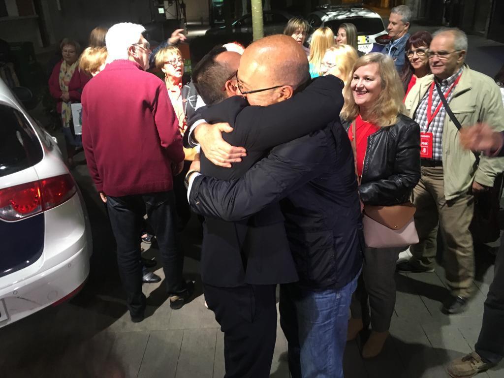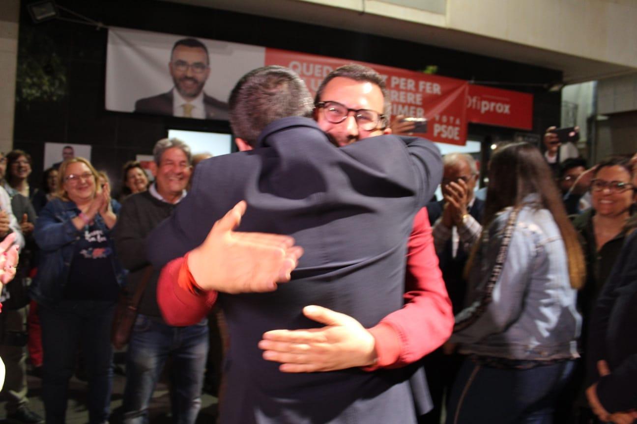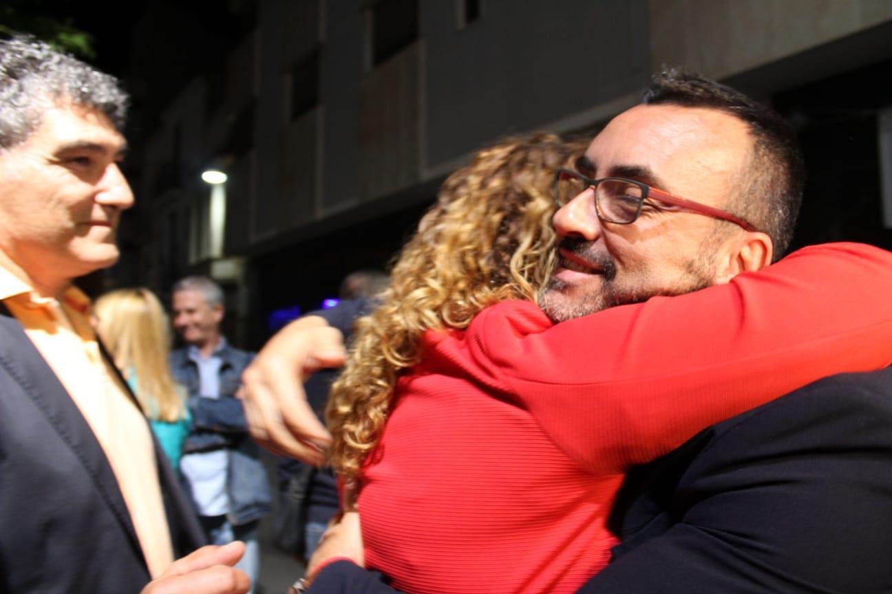 Candidats, militants, simpatitzants i familiars que estaven en l’oficina de Proximitat del PSOE, darrere just de l’Ajuntament, estaven eufòrics després de tancar-se l’escrutini i en l’ambient es respirava molta alegria. Just el contrari que la seu de Compromís i la del PP, amb cares llargues pels resultats obtinguts.